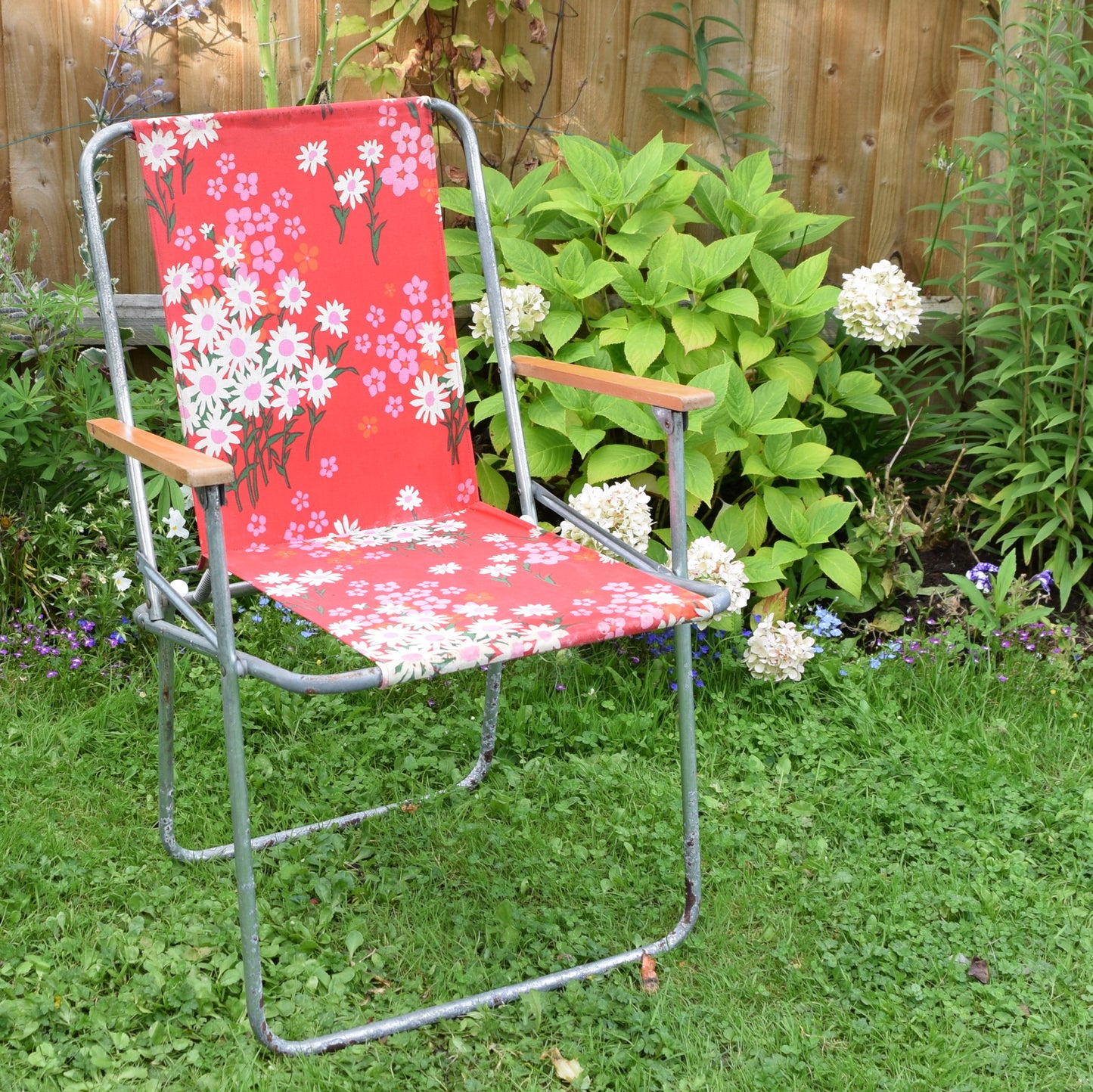 Vintage 1960s Folding Garden Chair - Flower Power - Pink