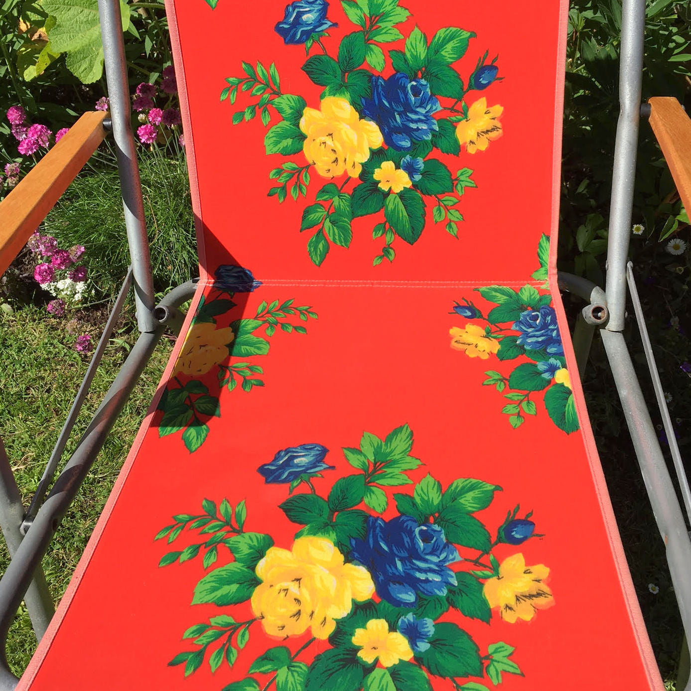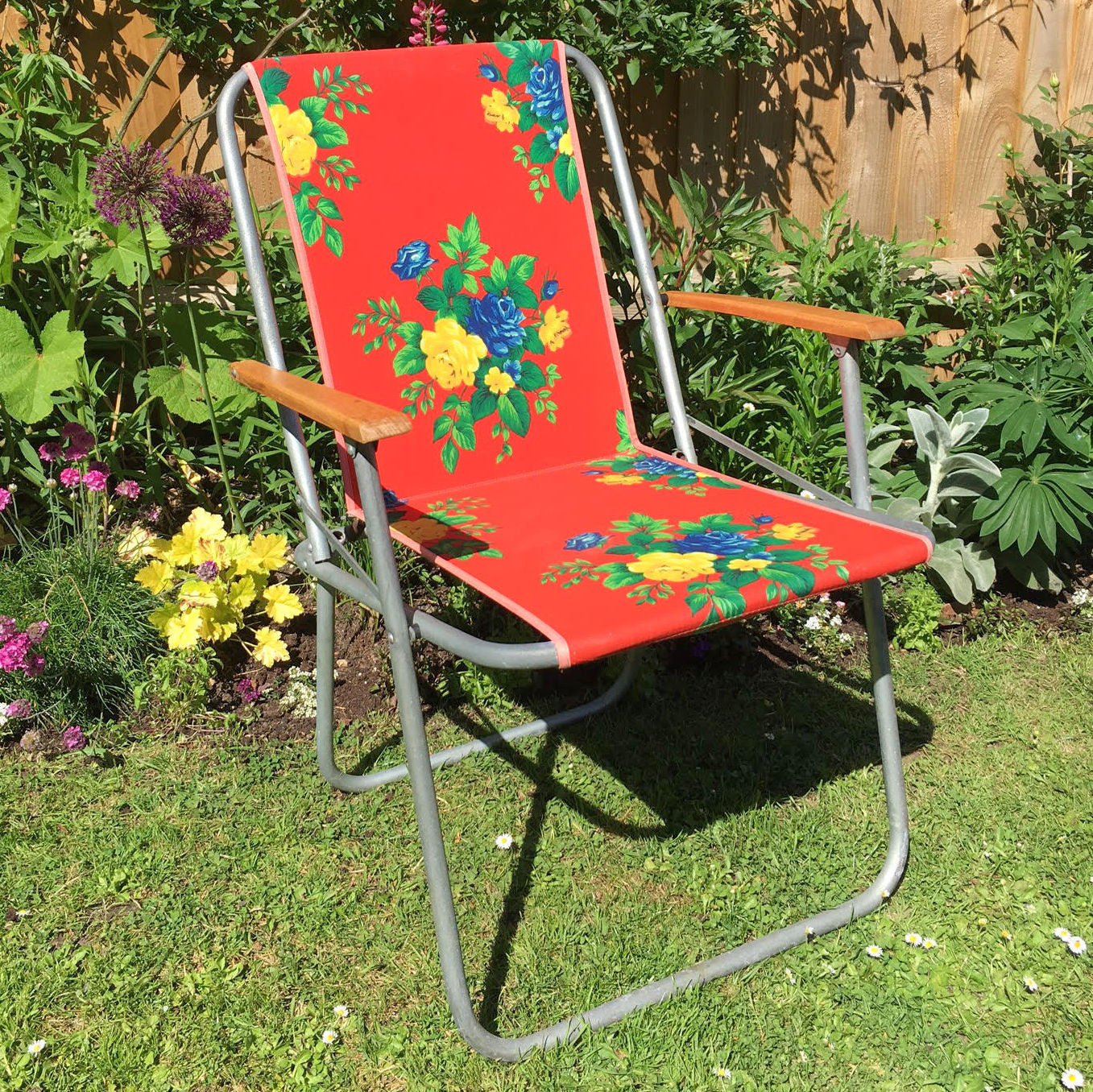 Vintage 1960s Folding Garden Chair - Flower Power - Red, Blue, Yellow & Green