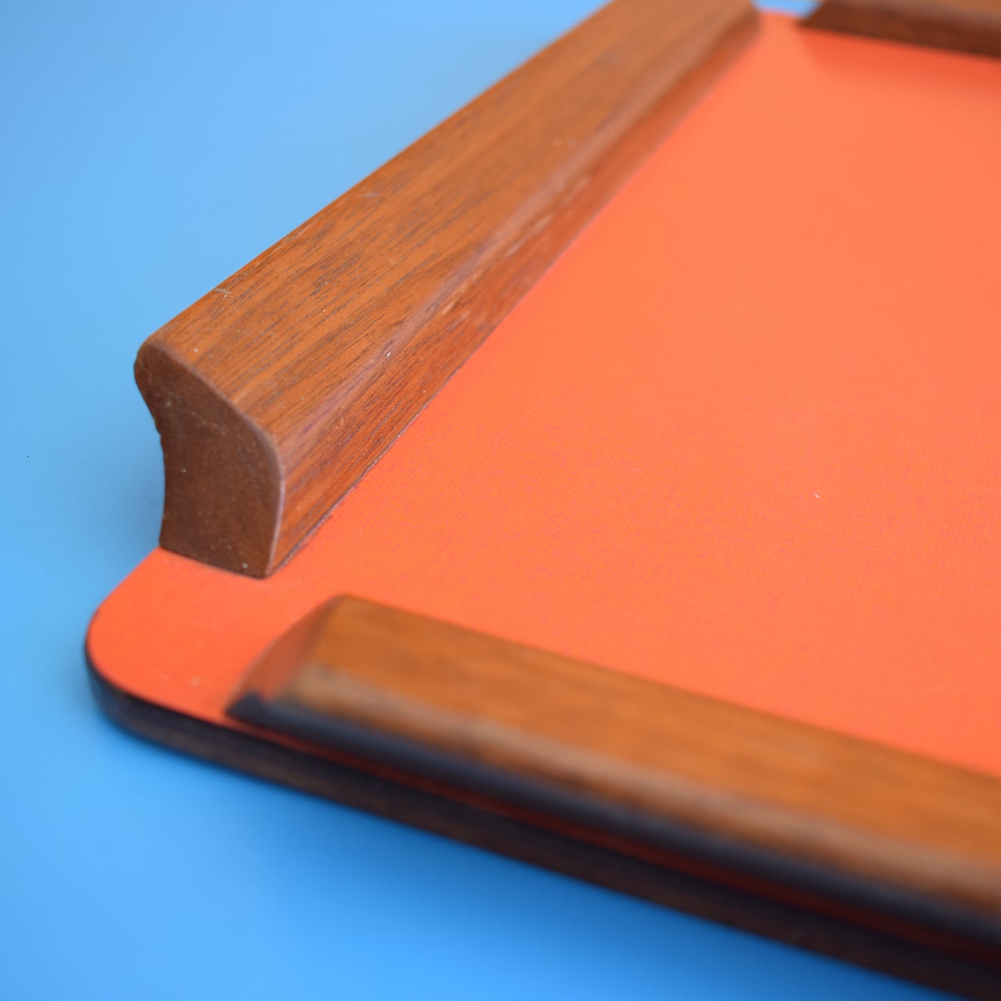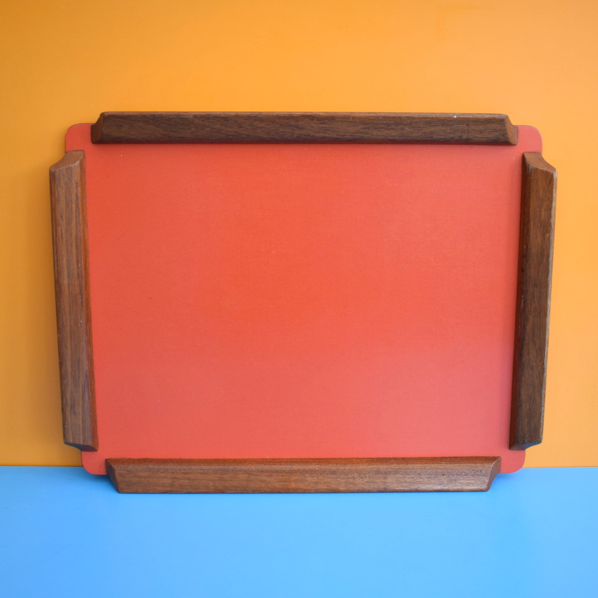 This is a vintage Formica tray, with a dark wooden surround (oak or teak)