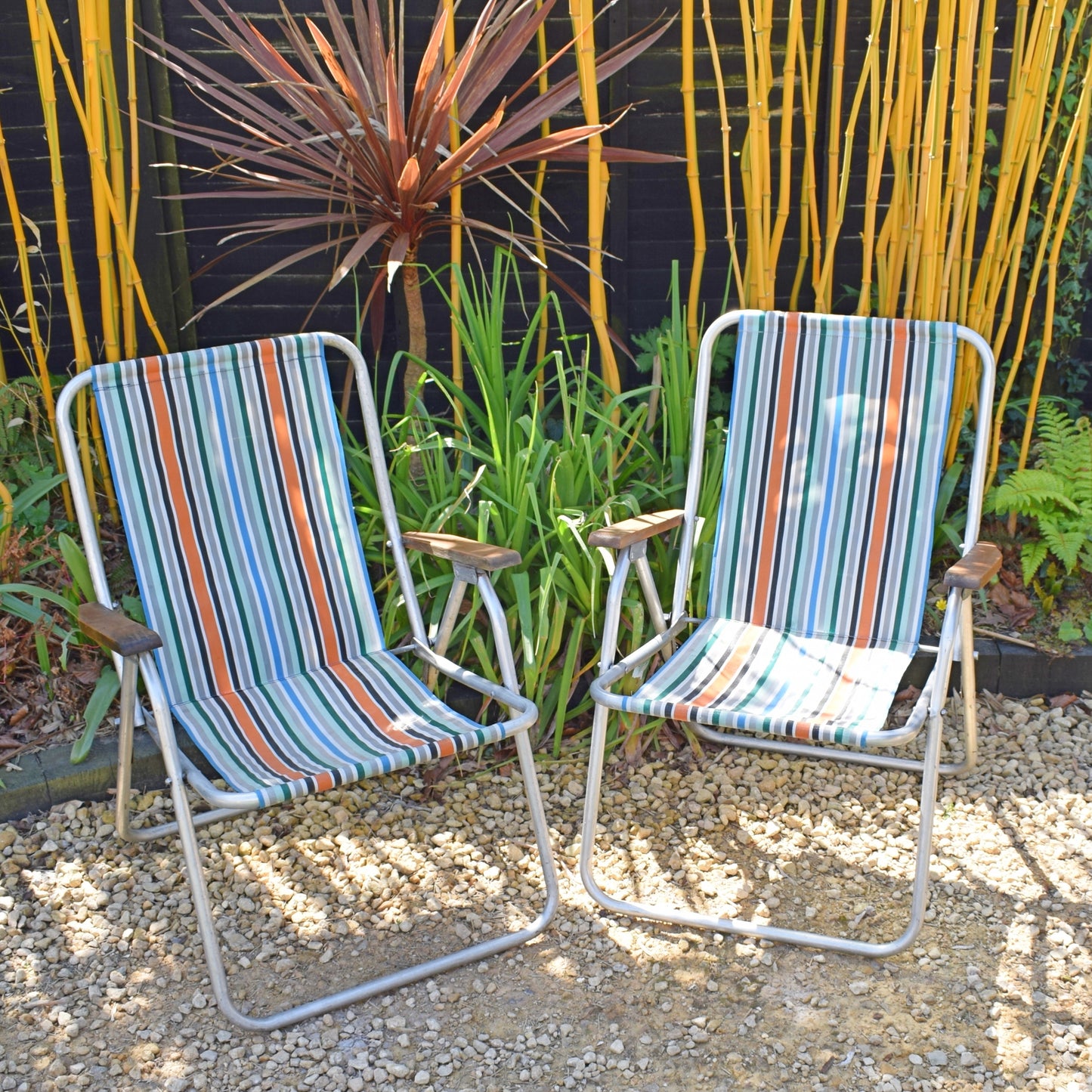 Vintage 1960s Garden Chair Pair - Striped Orange/ Blue