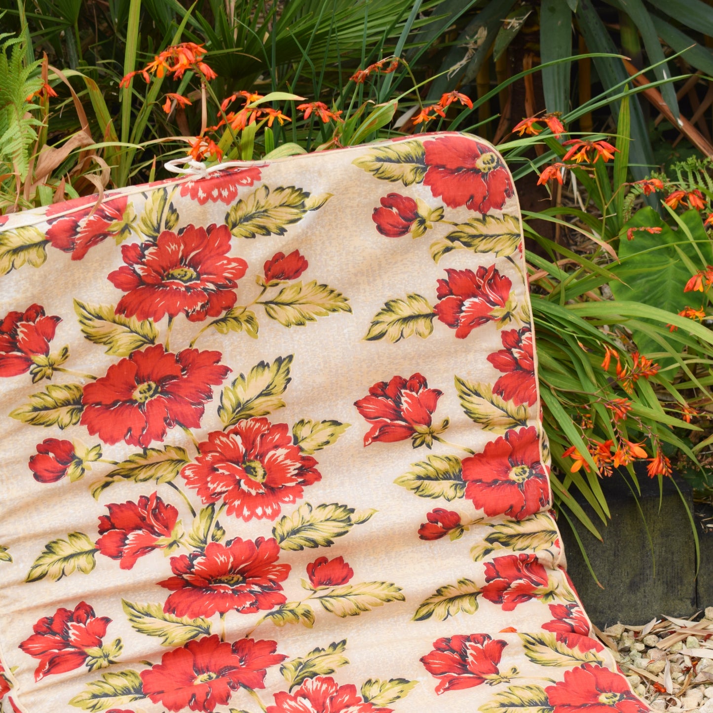 Vintage 1960s Garden Cushion / Mattress - Red Floral