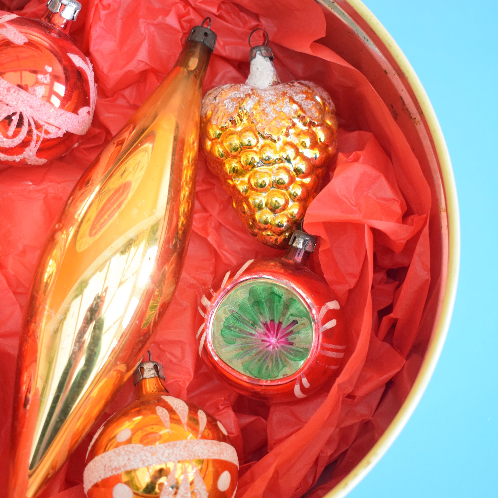 Vintage 1960s Glass Baubles - Sweetie Tin - Red & Gold