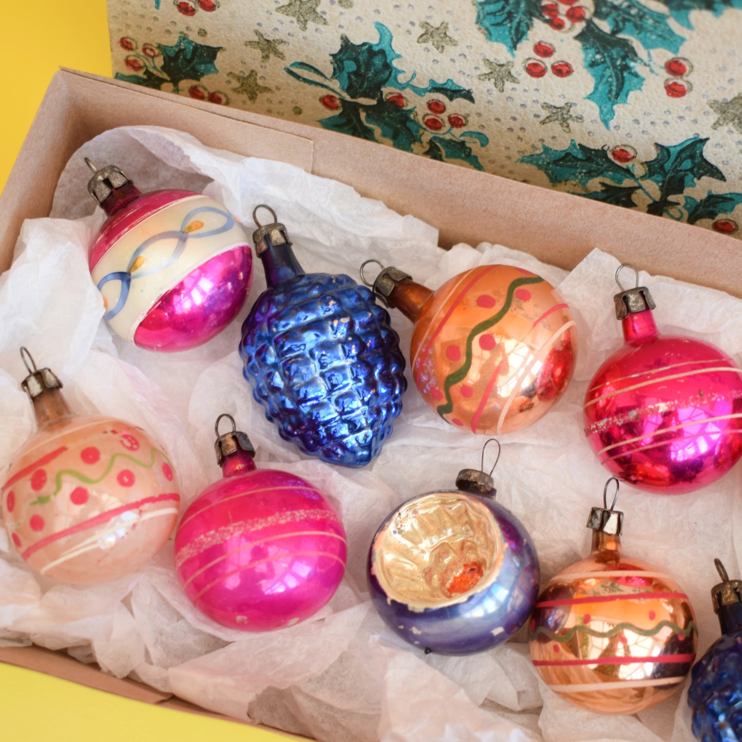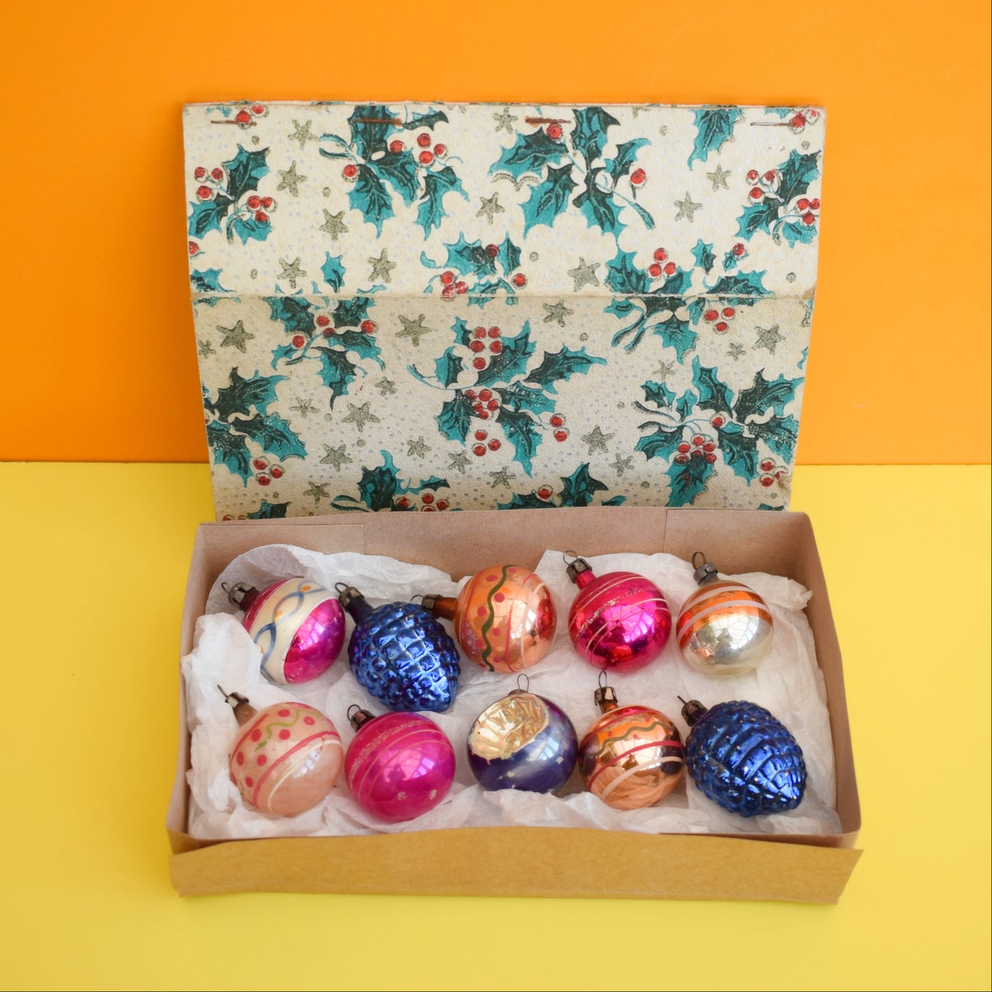Vintage 1960s Glass Christmas Baubles - 10 Small