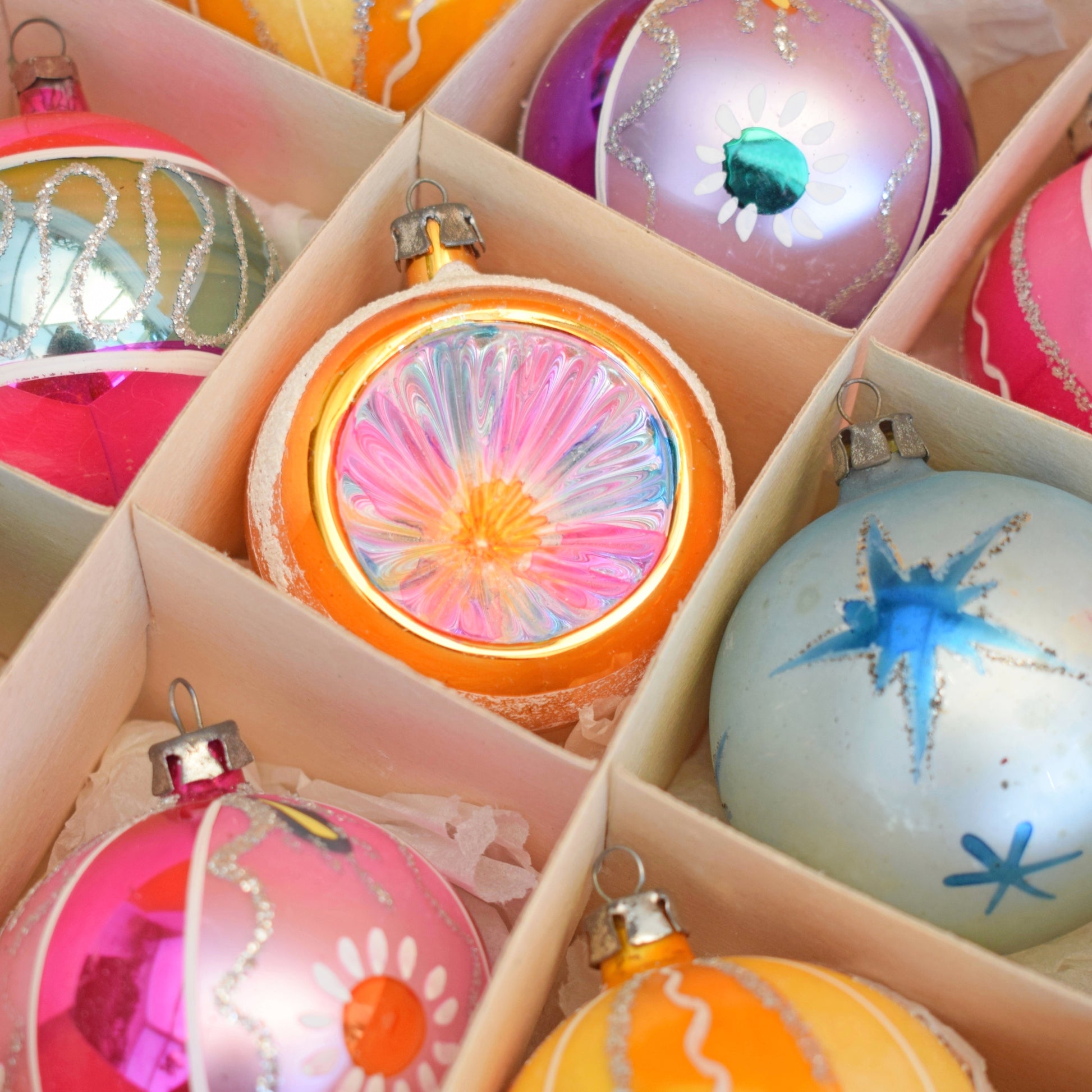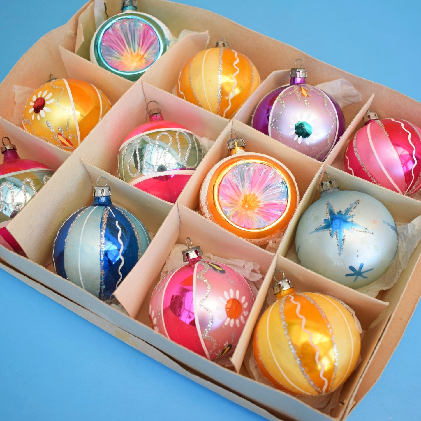 Vintage 1960s Glass Christmas Baubles - 12 Special
