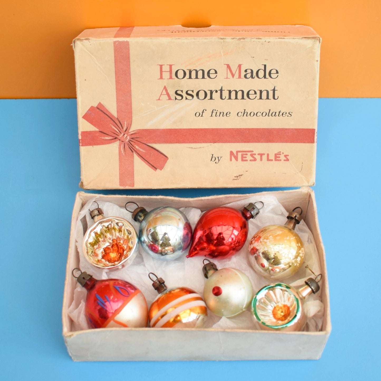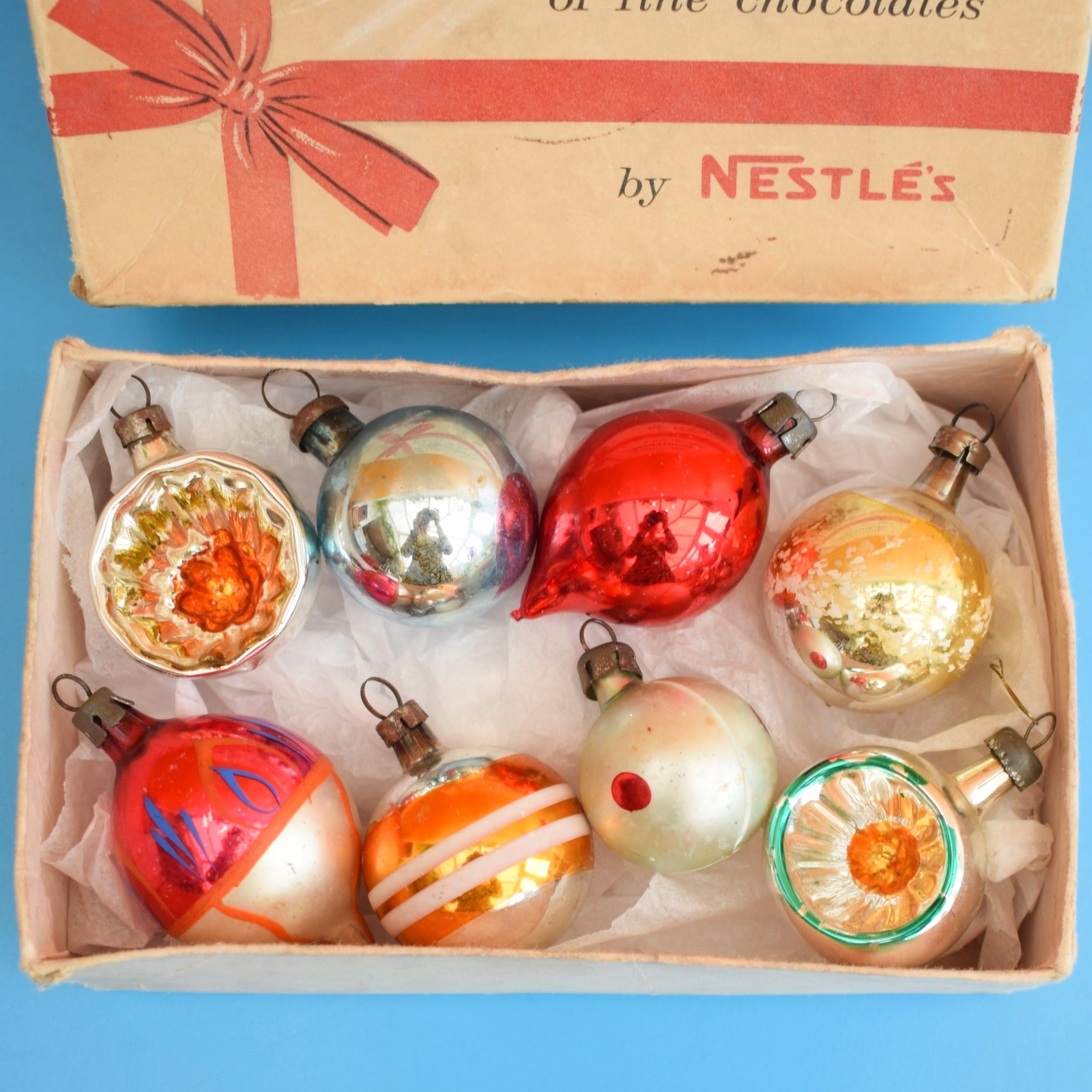 Vintage 1960s Glass Christmas Baubles - 8 Smaller .