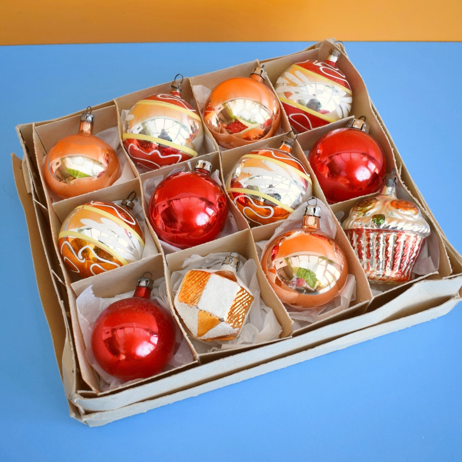 - Features Ideal for tree decoration or display; collectible mid-century Christmas ornaments; handcrafted glass workmanship; attractive red & gold palettes; mixed shapes add vintage authenticity and variety