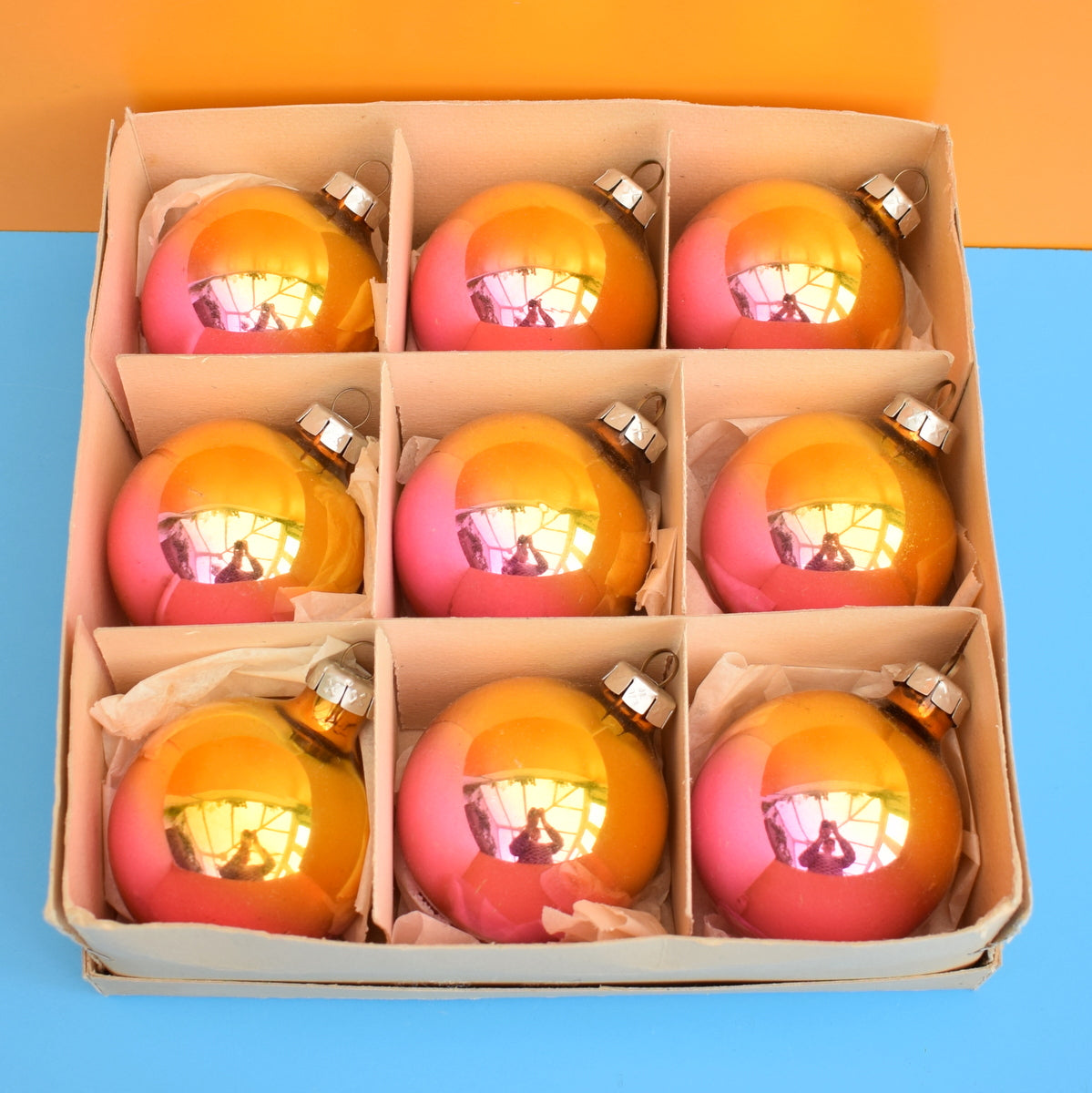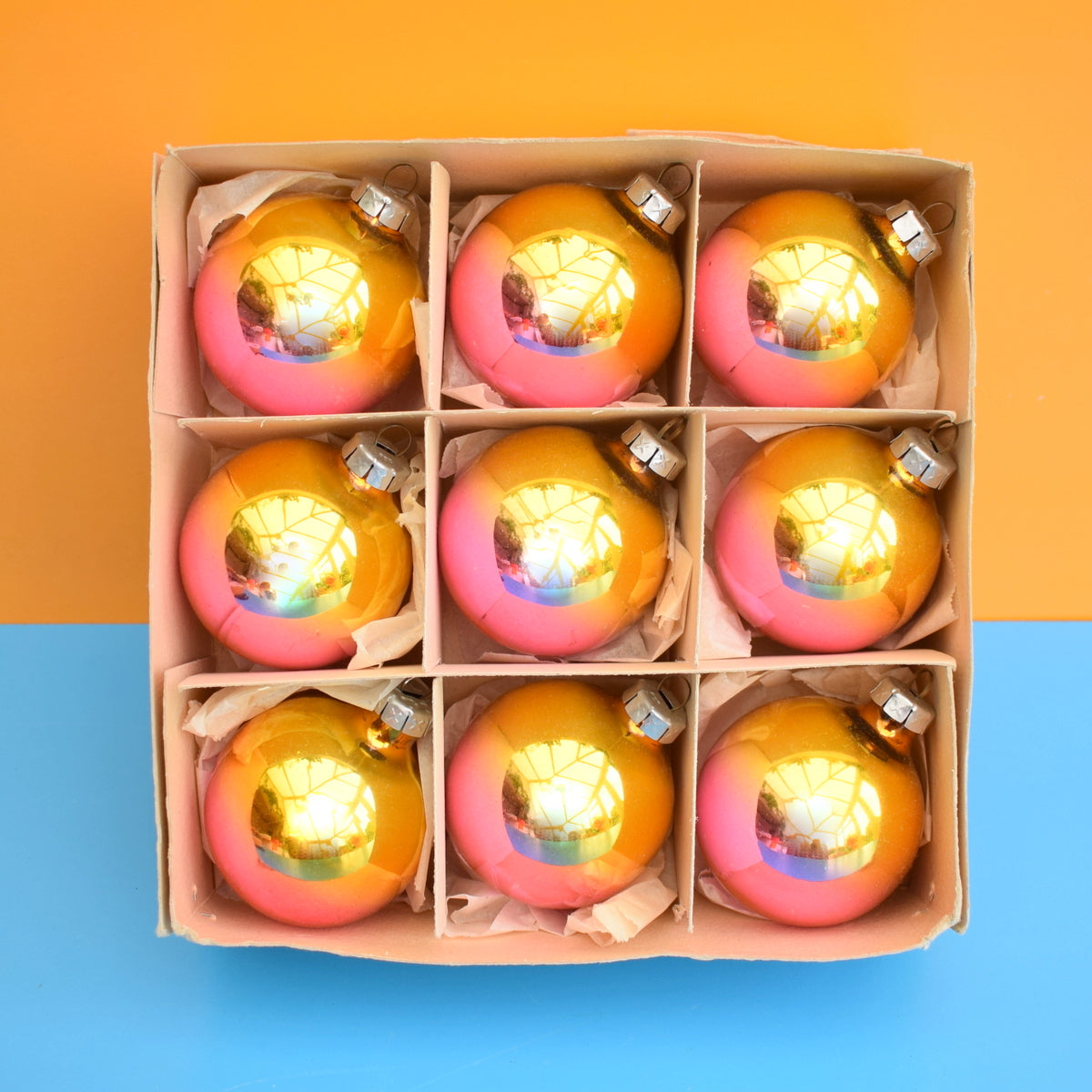 Vintage 1960s Glass German Christmas Baubles - Large - Pink/ Gold