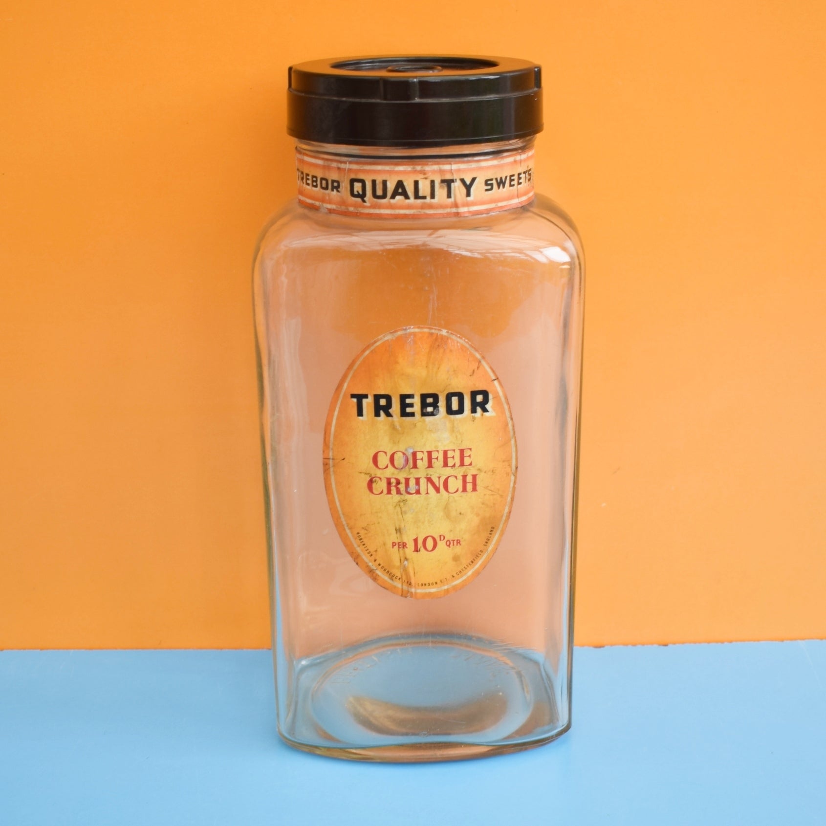 This is a really lovely vintage glass sweet shop jar for Trebor Coffee crunch