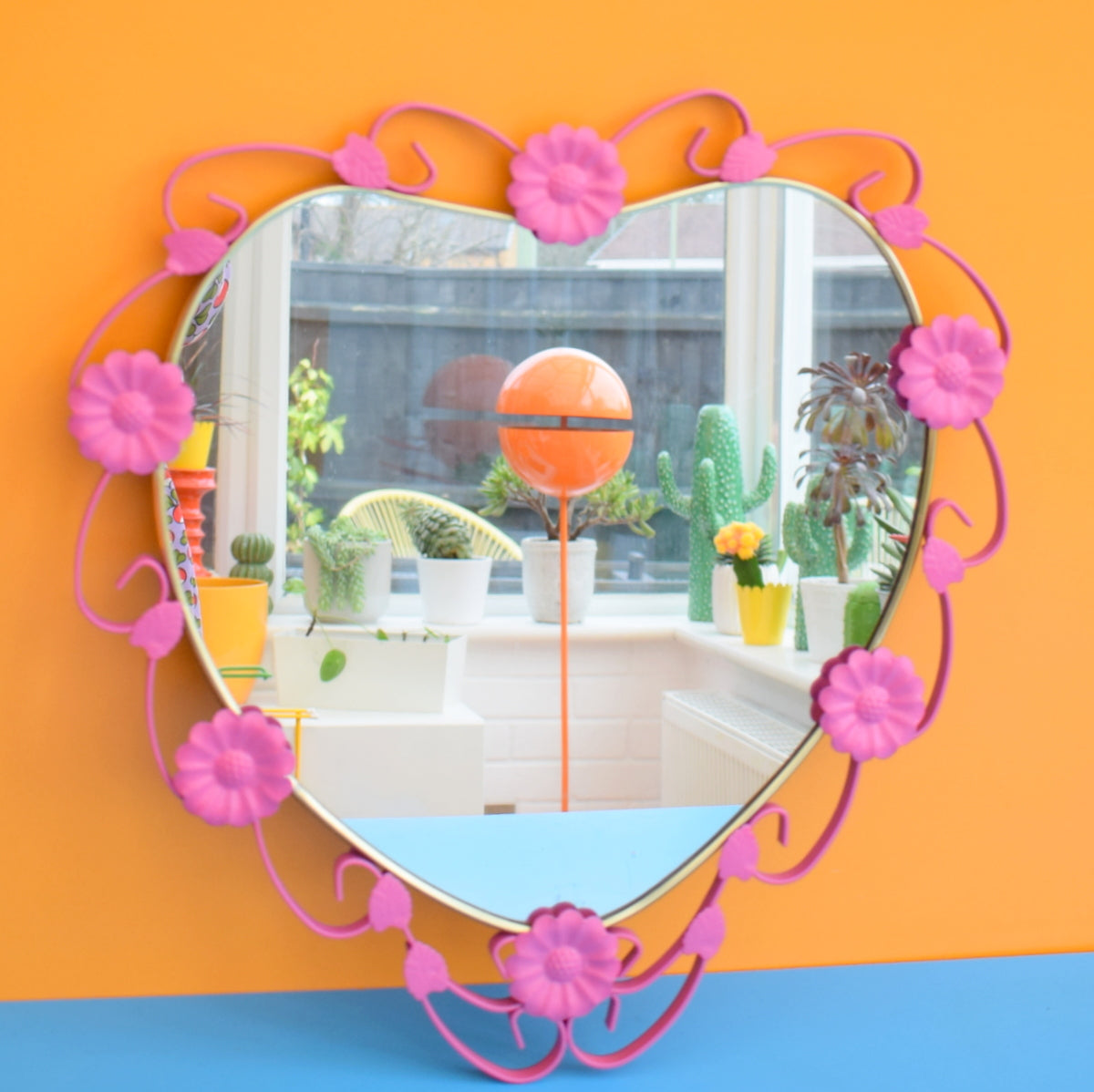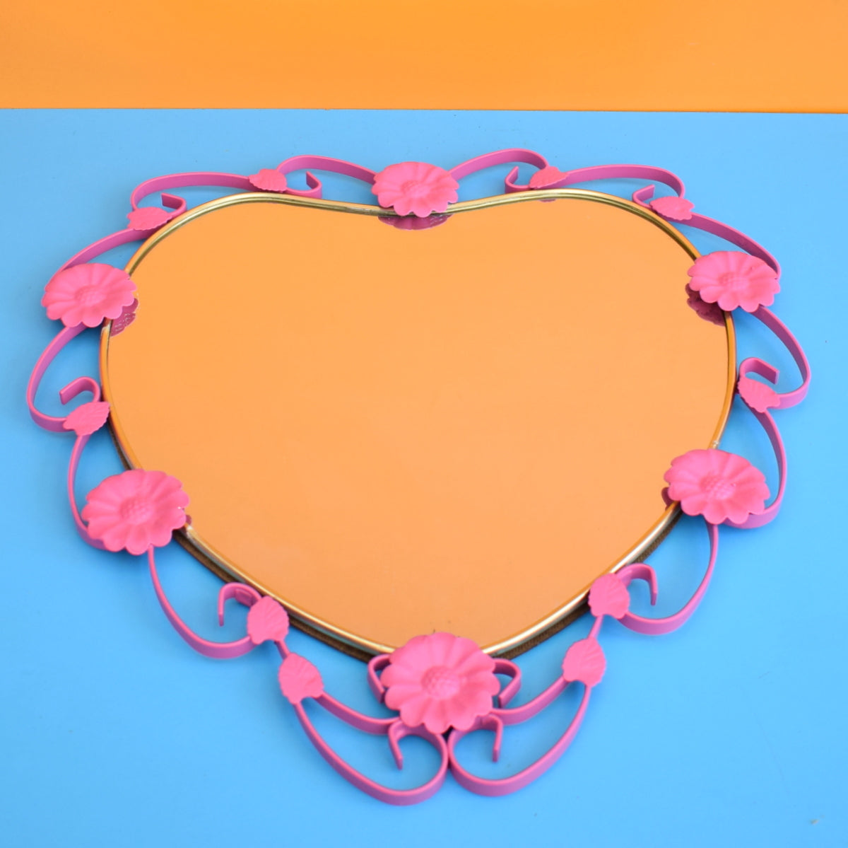 Vintage 1960s Heart Shaped Metal Mirror - Pink