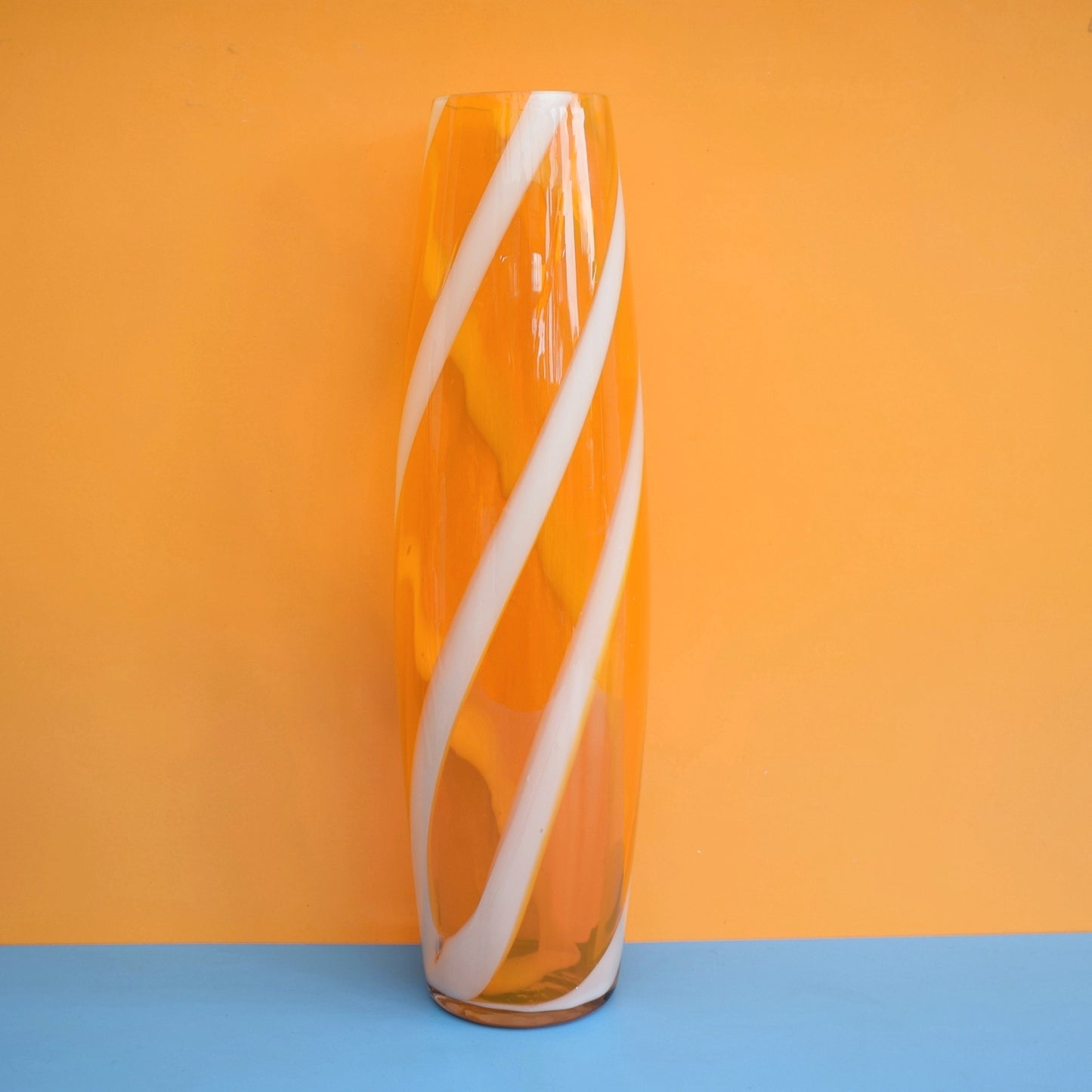 Imported from Italy by a company called Alrose, this is an orange swirl bullet vase,