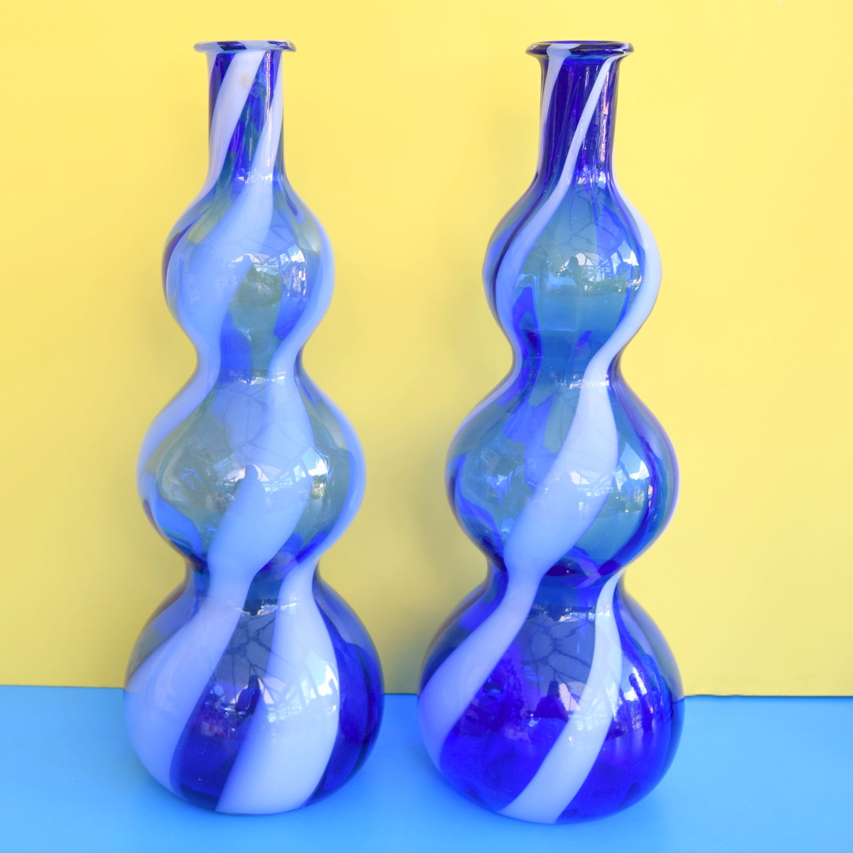 Vintage 1960s Italian Glass Genie Bottles & Vases - Blue