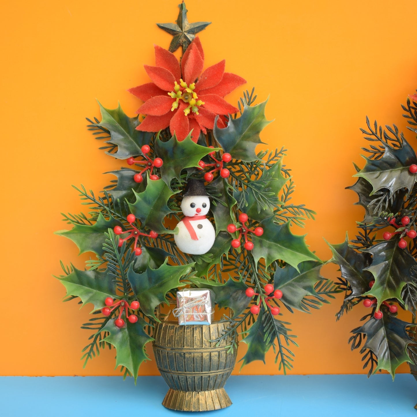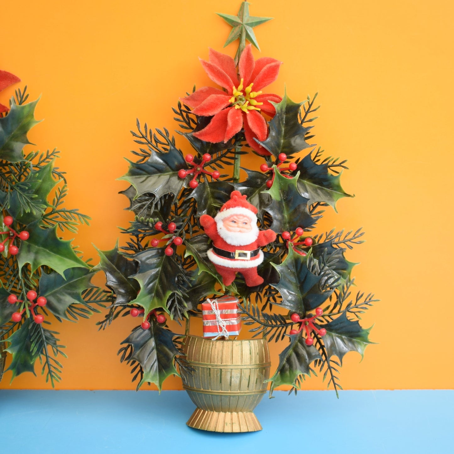 Vintage 1960s Kitsch Plastic Christmas Decorations - Santa / Snowman Tree