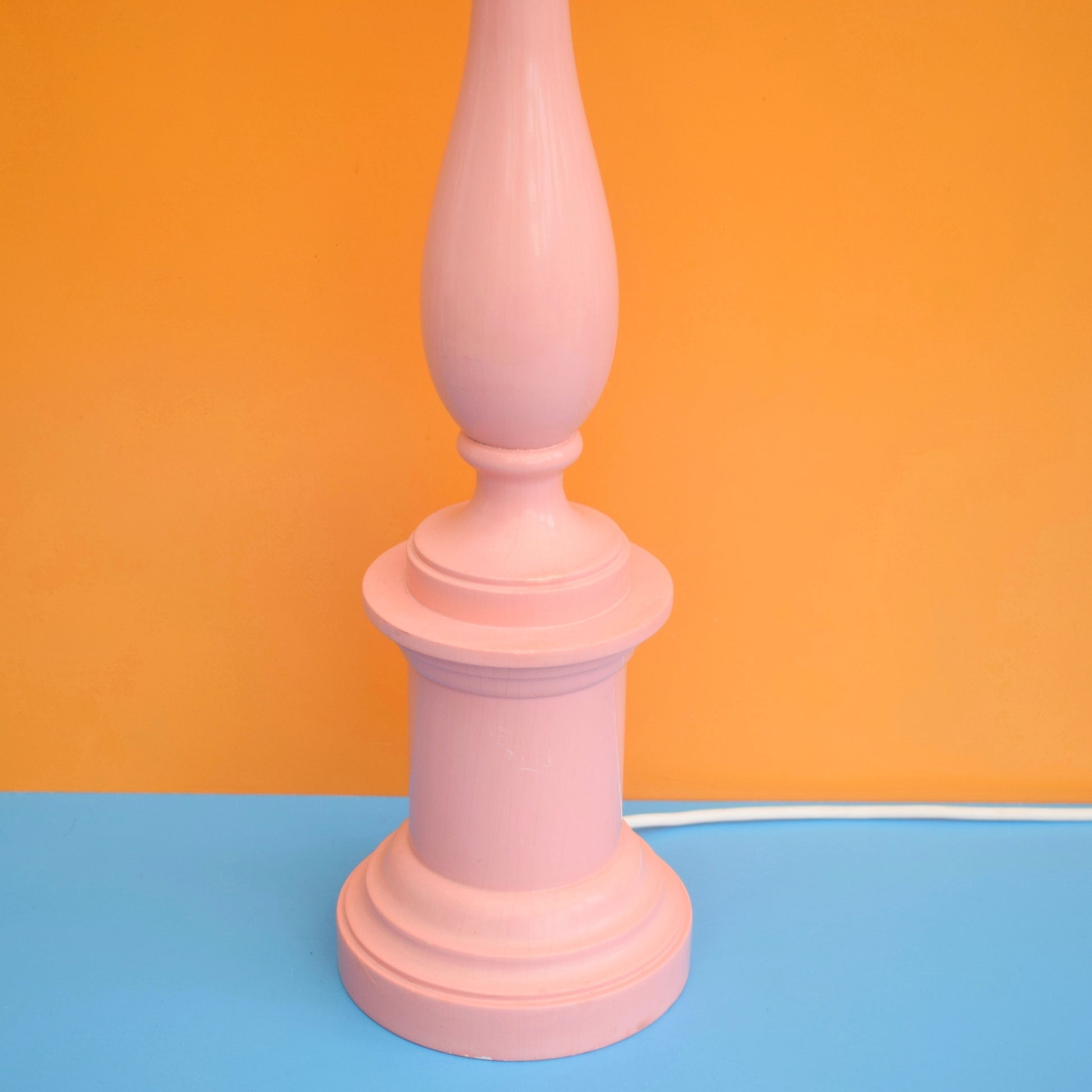 A vintage 1960s lamp base in salmon pink, ready to pair with a shade for instant retro charm.