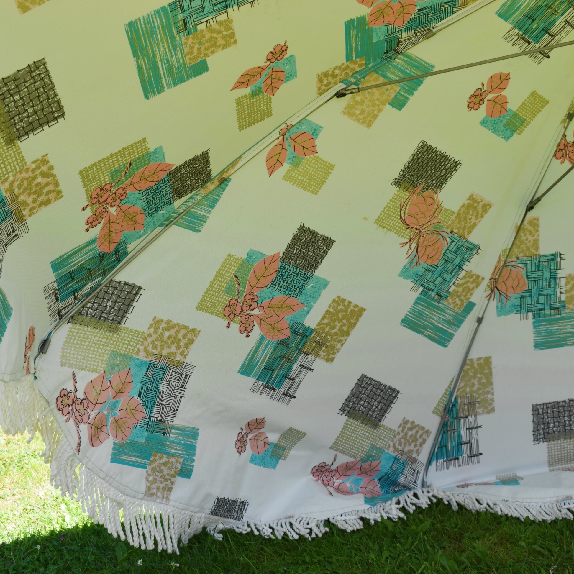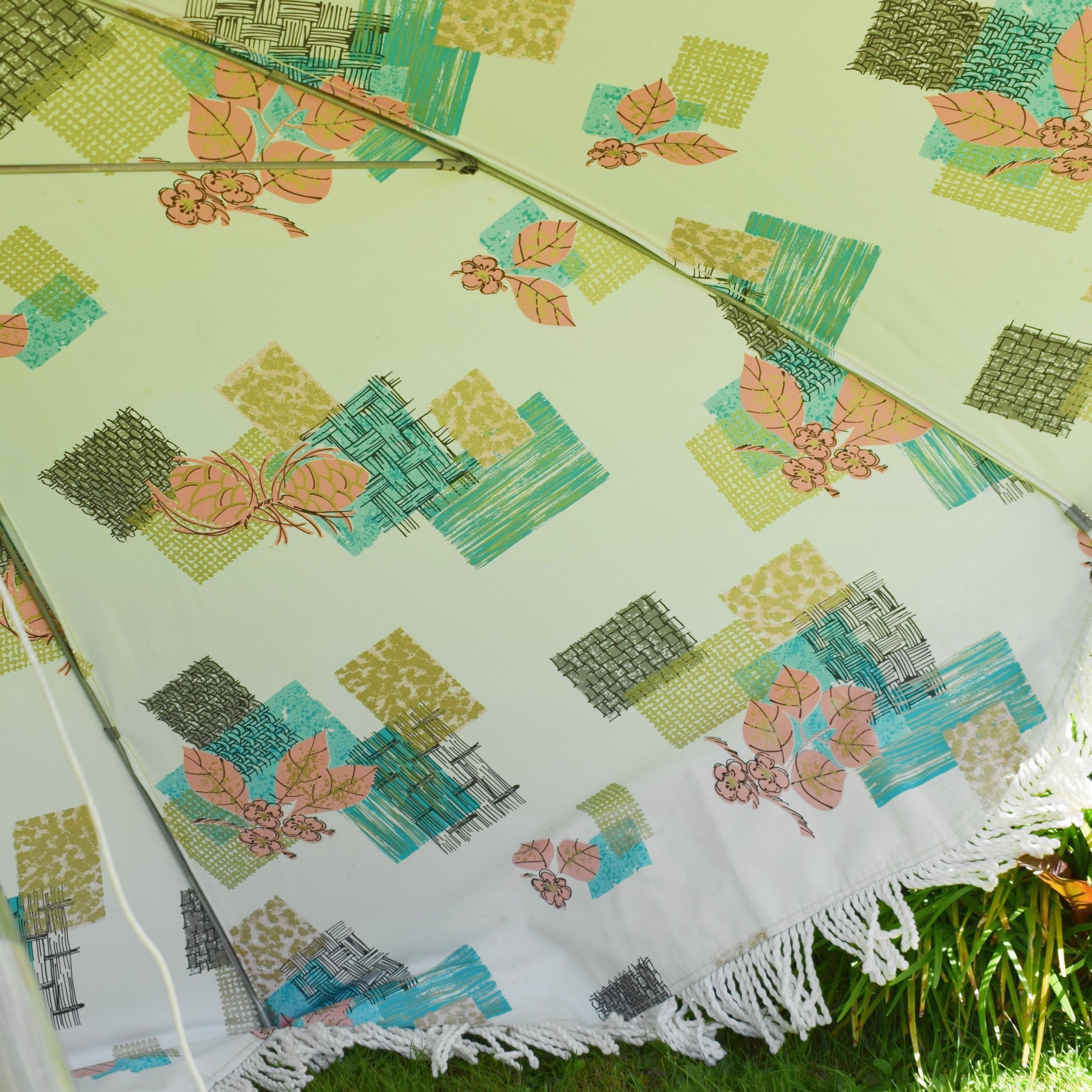 Vintage 1960s Large Vinyl Folding Garden Parasol - American - Turquoise/ Pink- Boxed