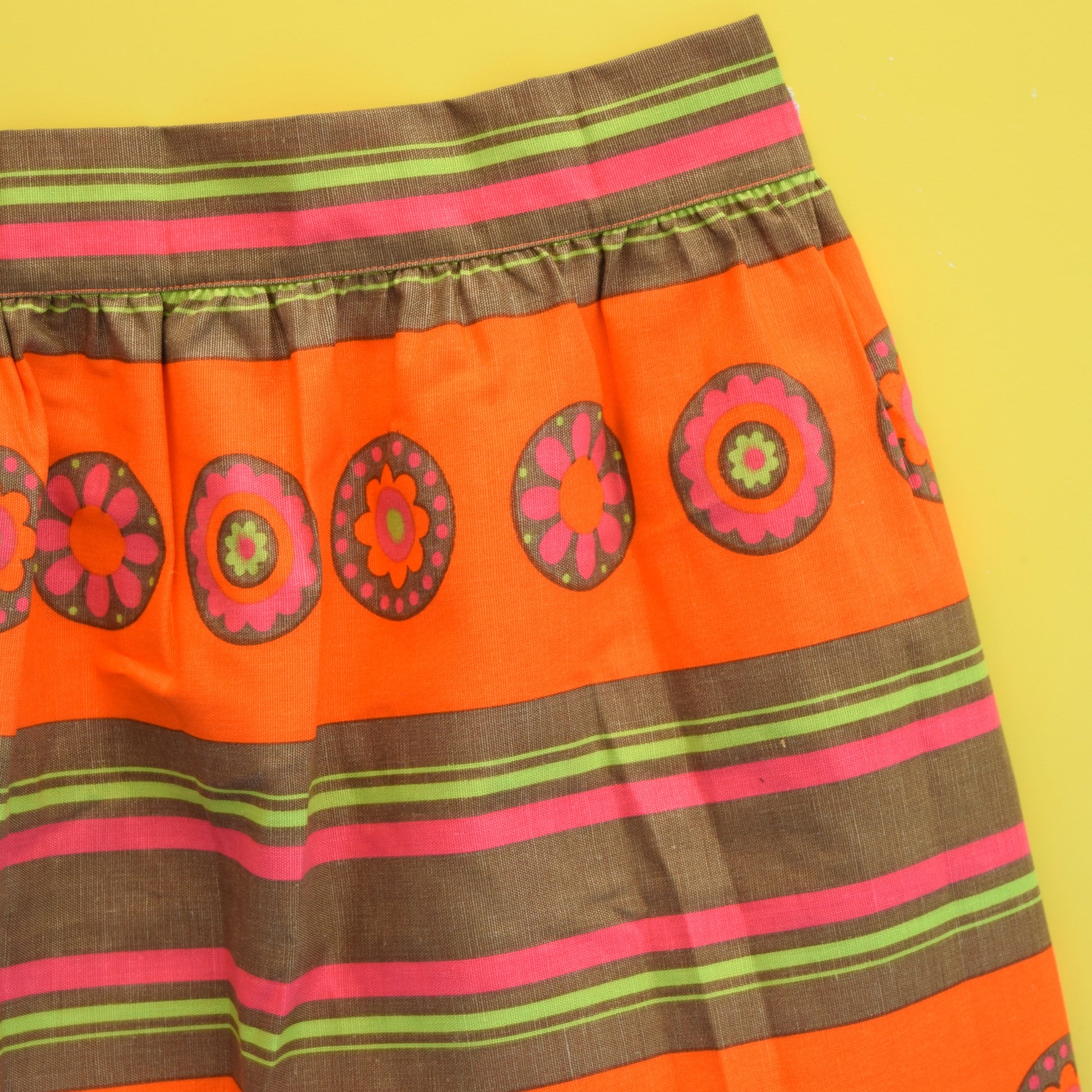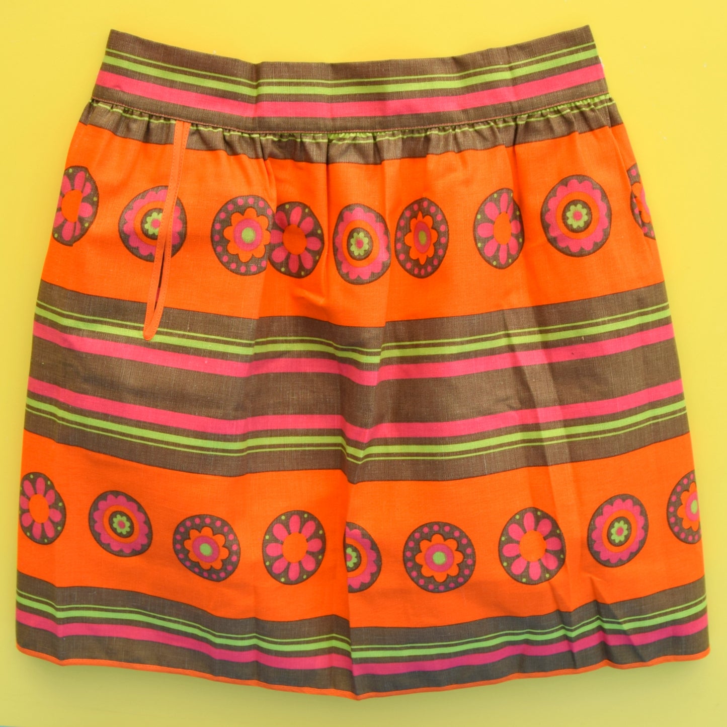 Vintage 1960s M&S Flower Power Half Apron - Orange, Pink & Green