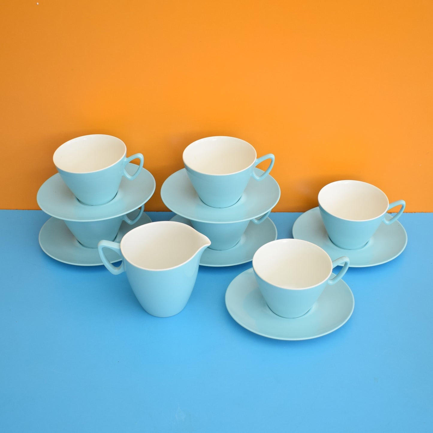 This is a lovely set of powder blue Melamine plastic