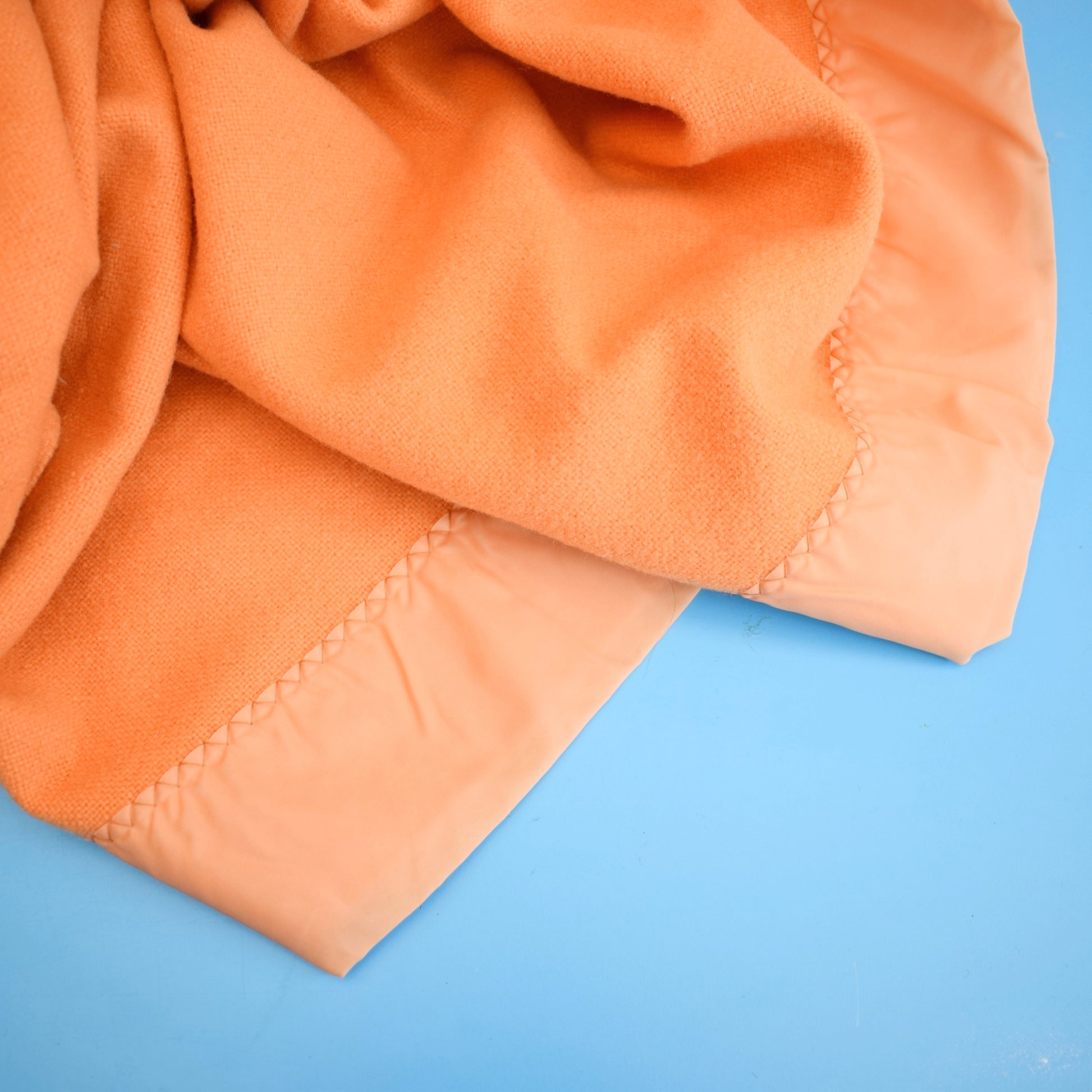 Vintage 1960s Merino Wool Blanket / Throw - Mango Orange