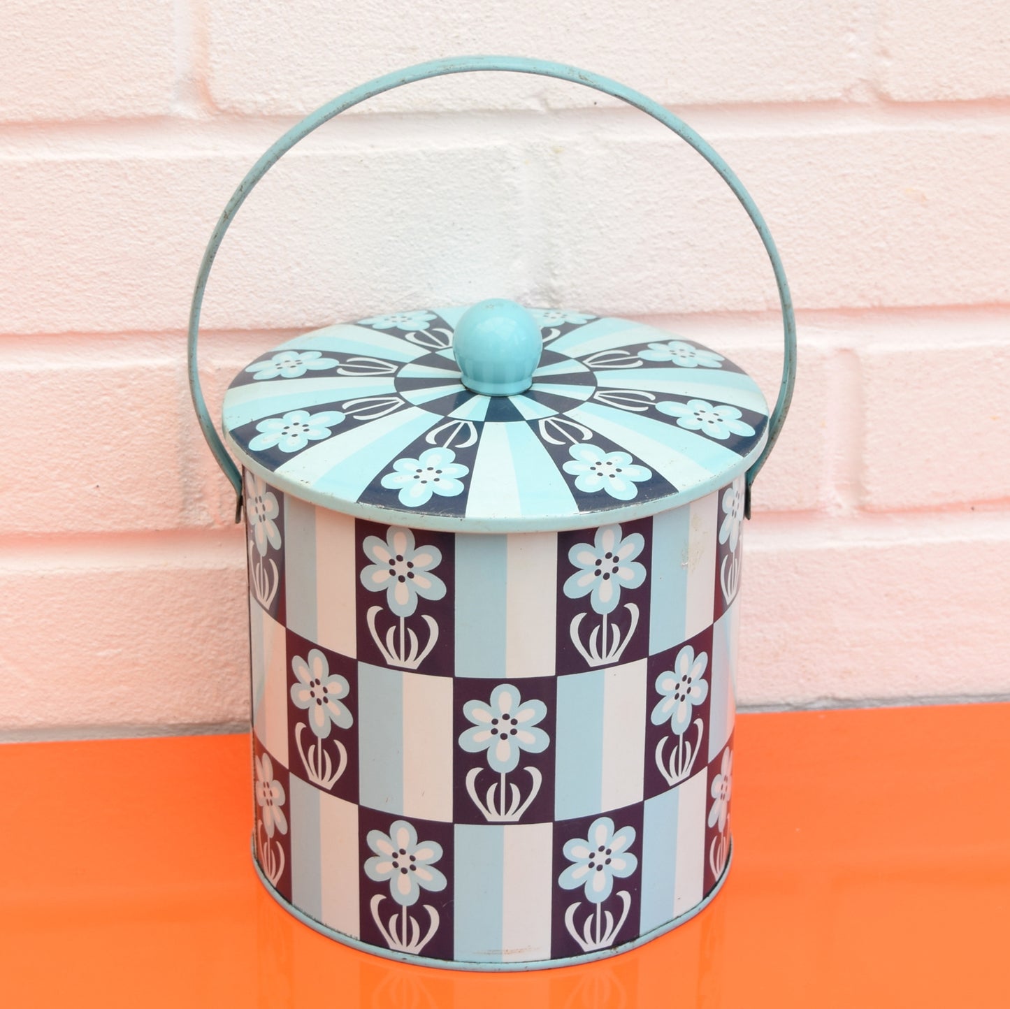 Vintage 1960s Metal Biscuit Tin - Flower Power - Blue