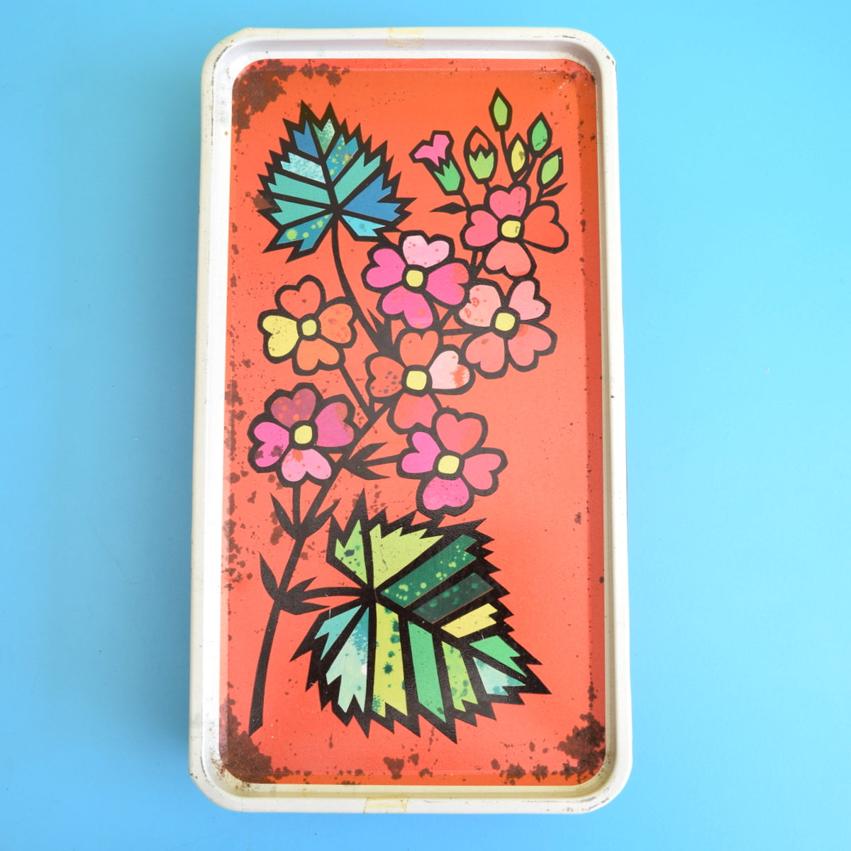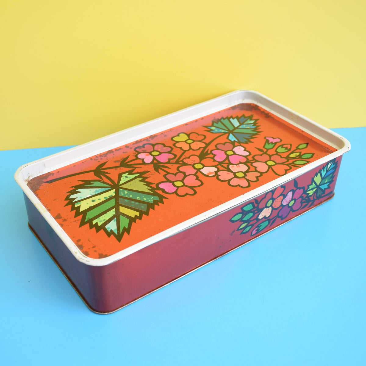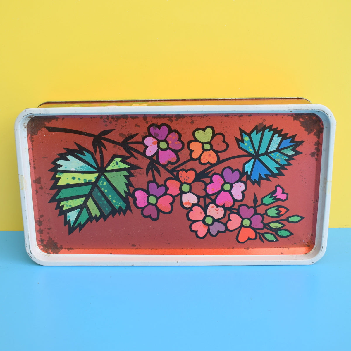 Vintage 1960s Rectangular Metal Tin - Bourneville Chocolate - Flower Power - Red
