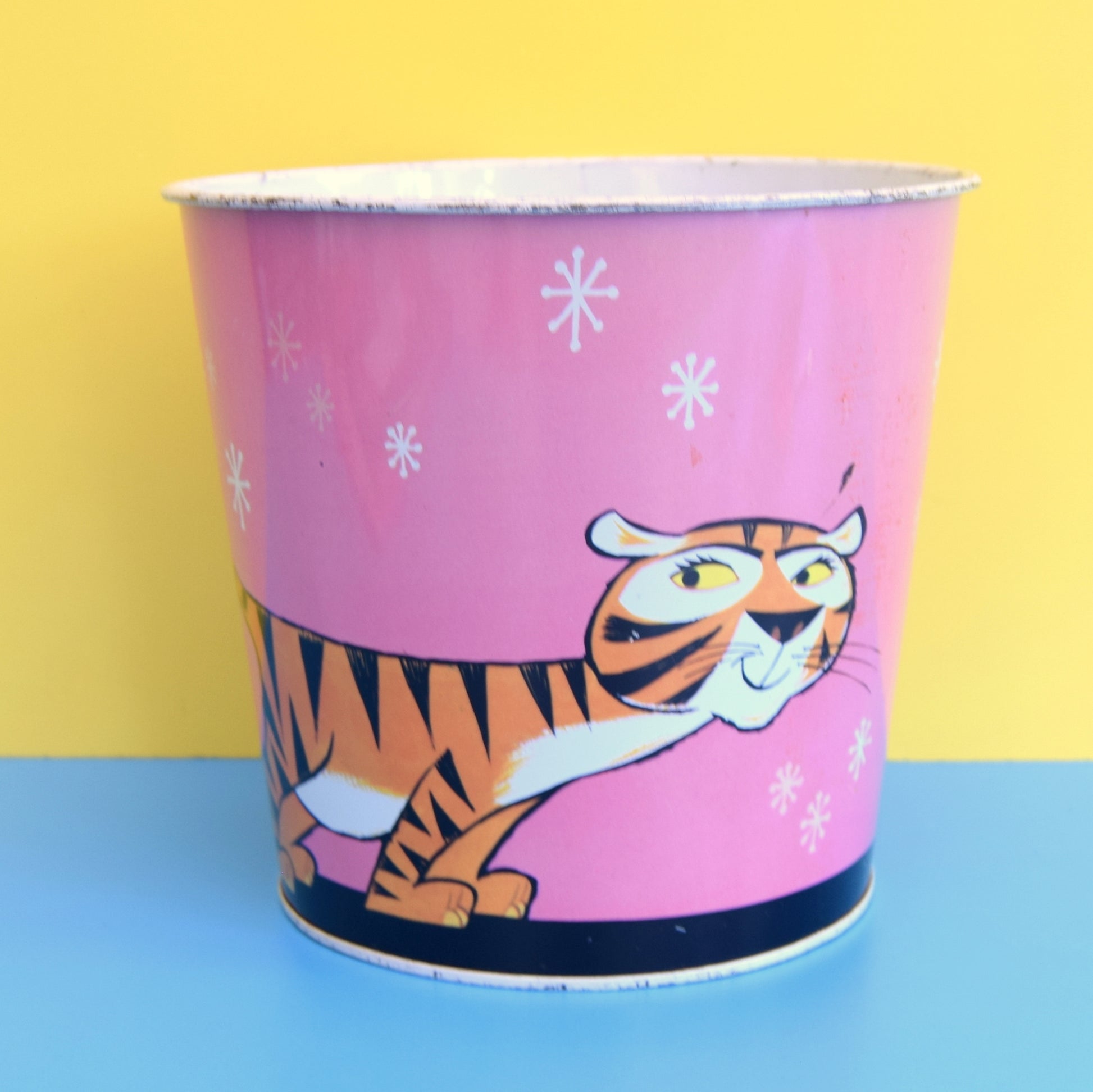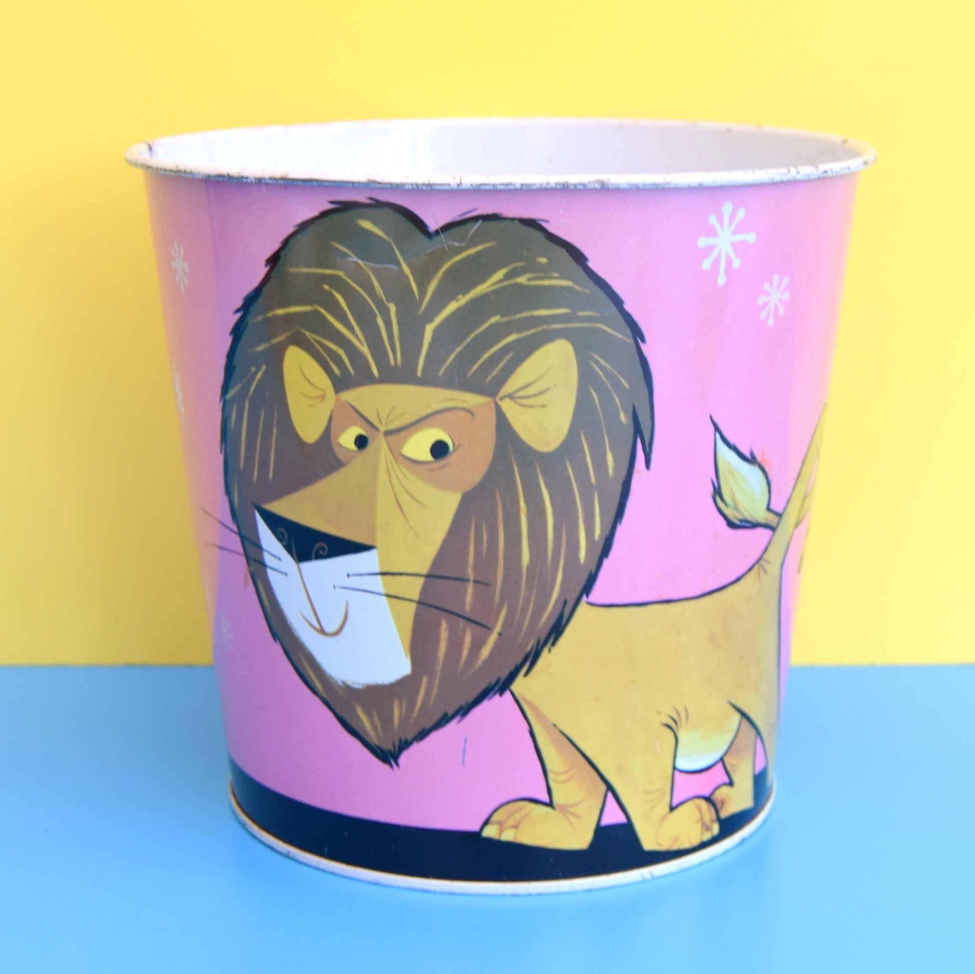 Vintage 1960s Metal Waste Paper Bin - Disney ? - Lion & Tiger