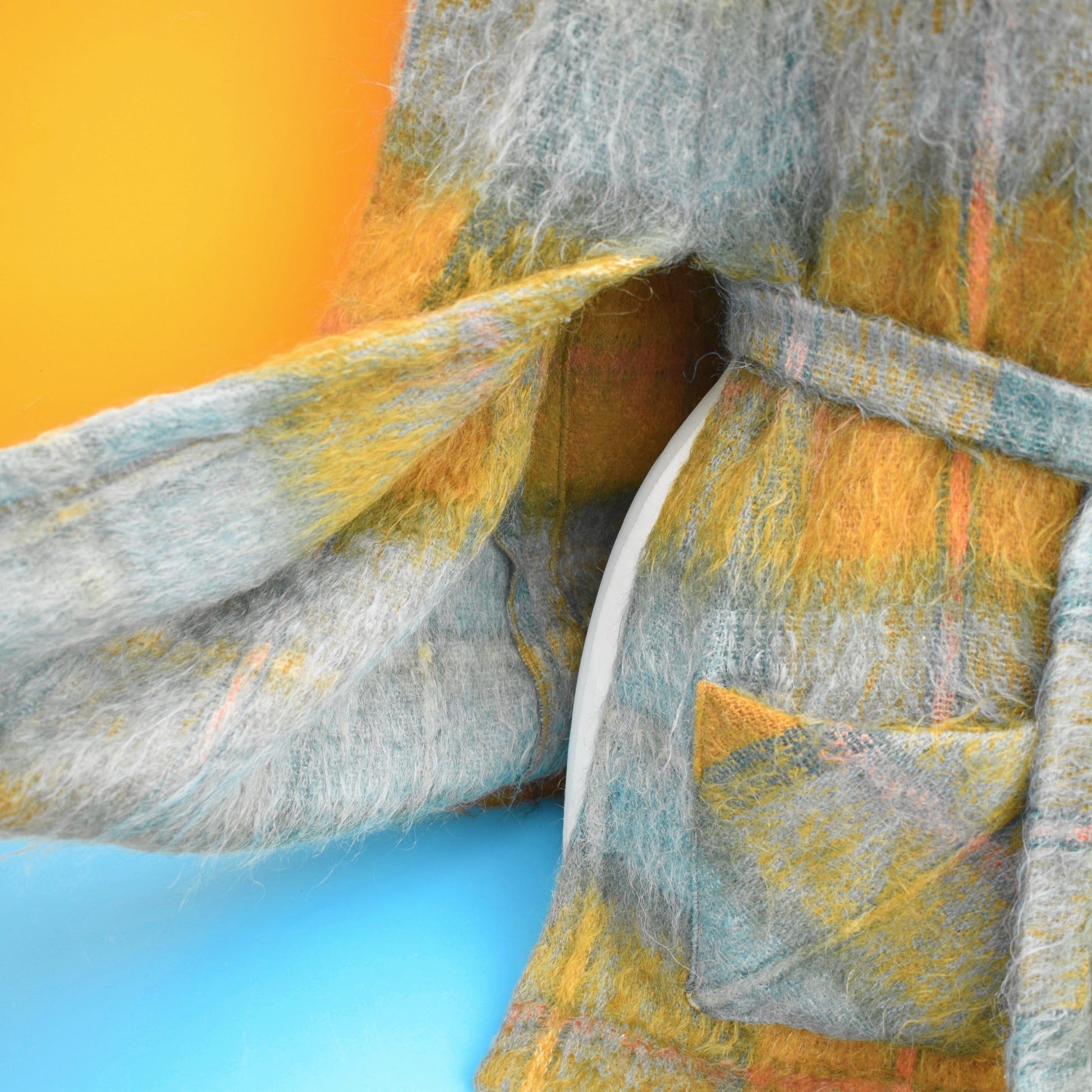 Timeless 1960s Scottish tailoring: a plush teal mohair belted cape with mustard accents, crafted for those who love vintage elegance and versatile outerwear. Perfect for layering over knitwear or dresses, this cape blends luxe texture with retro charm.