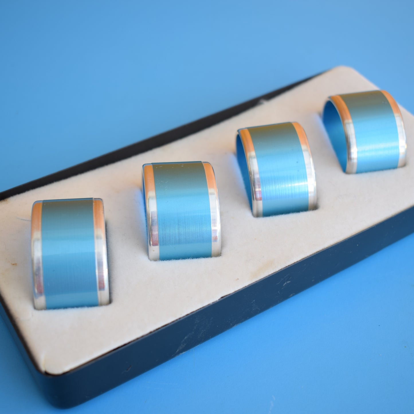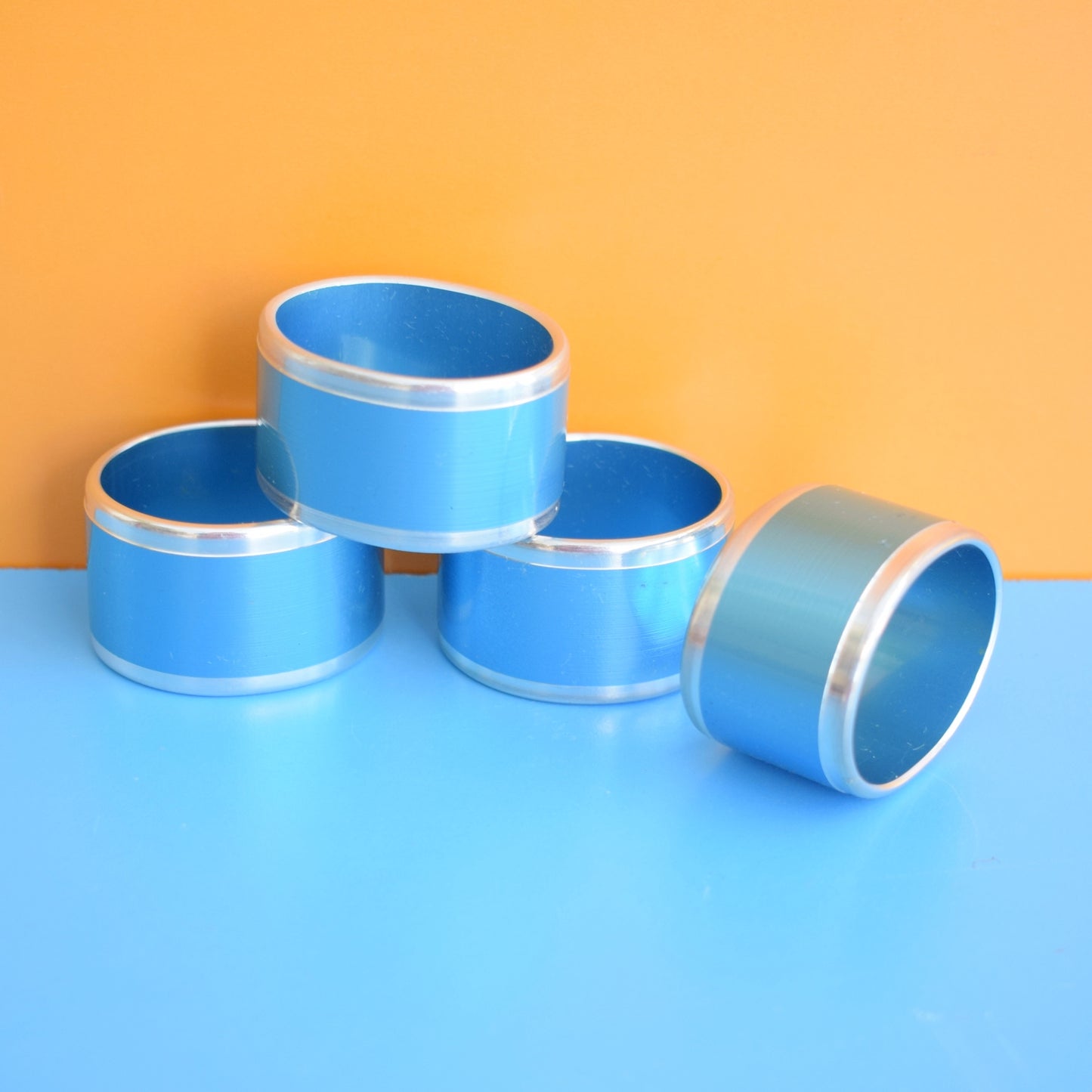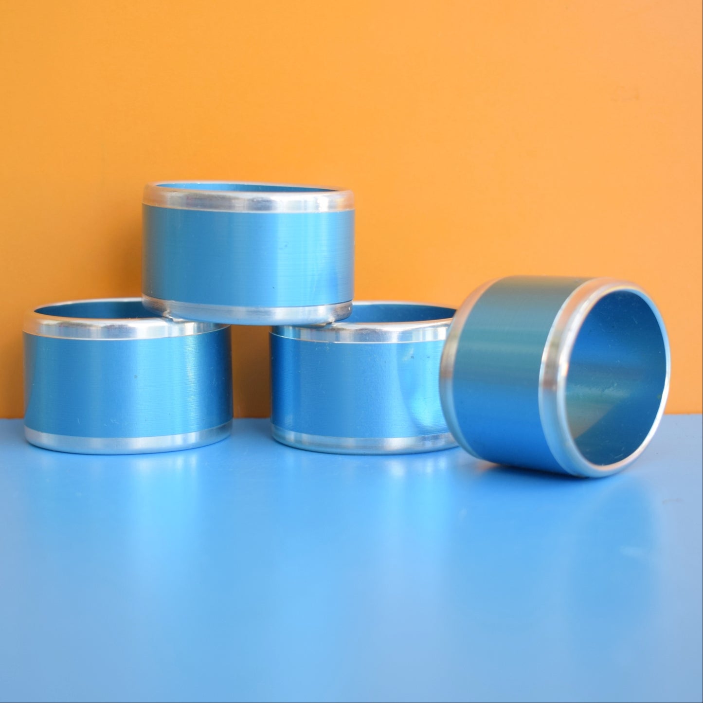 Vintage 1960s Napkin Rings - Anodised Aluminium- Blue