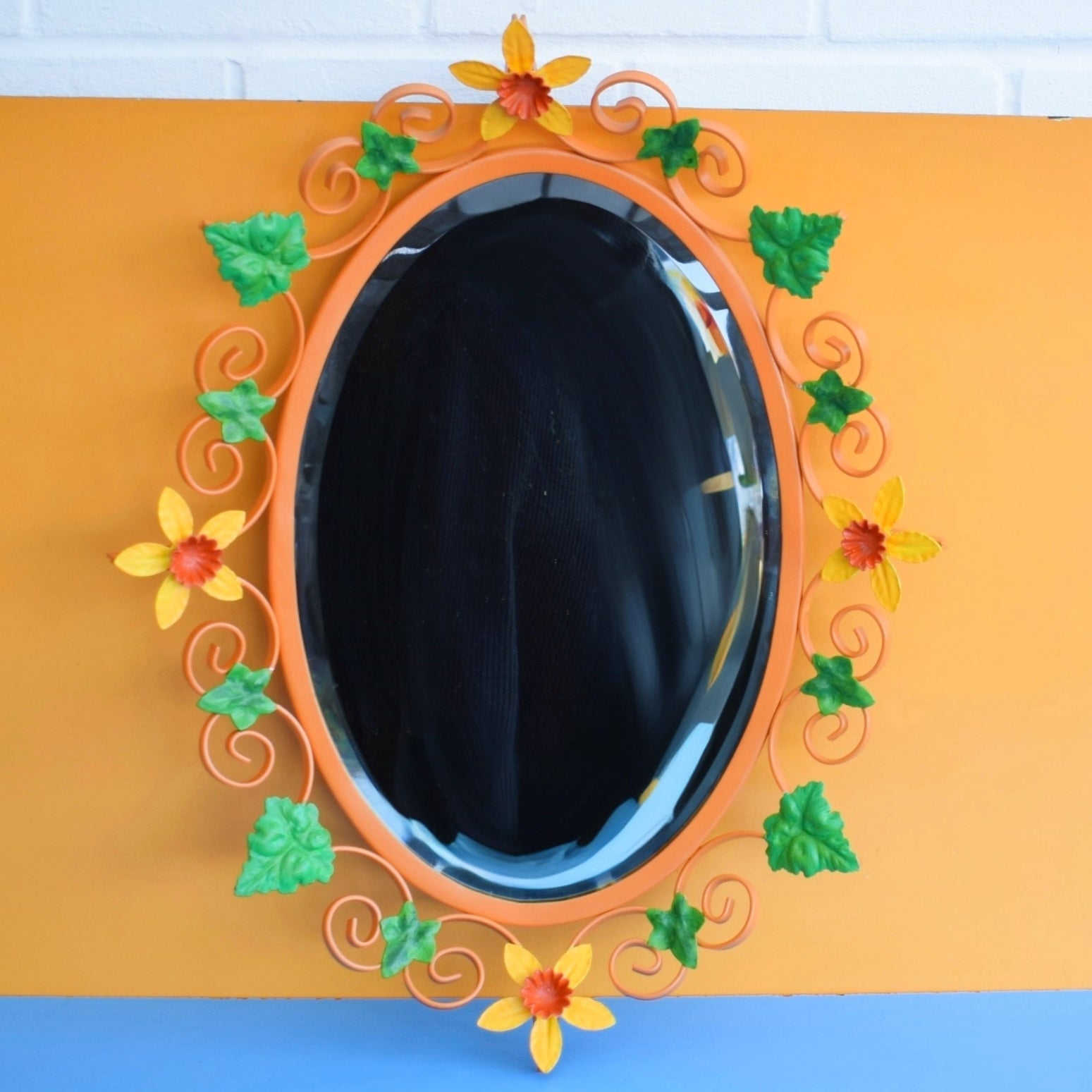 Vintage 1960s Oval Flower Mirror - Yellow & Orange Daffodils
