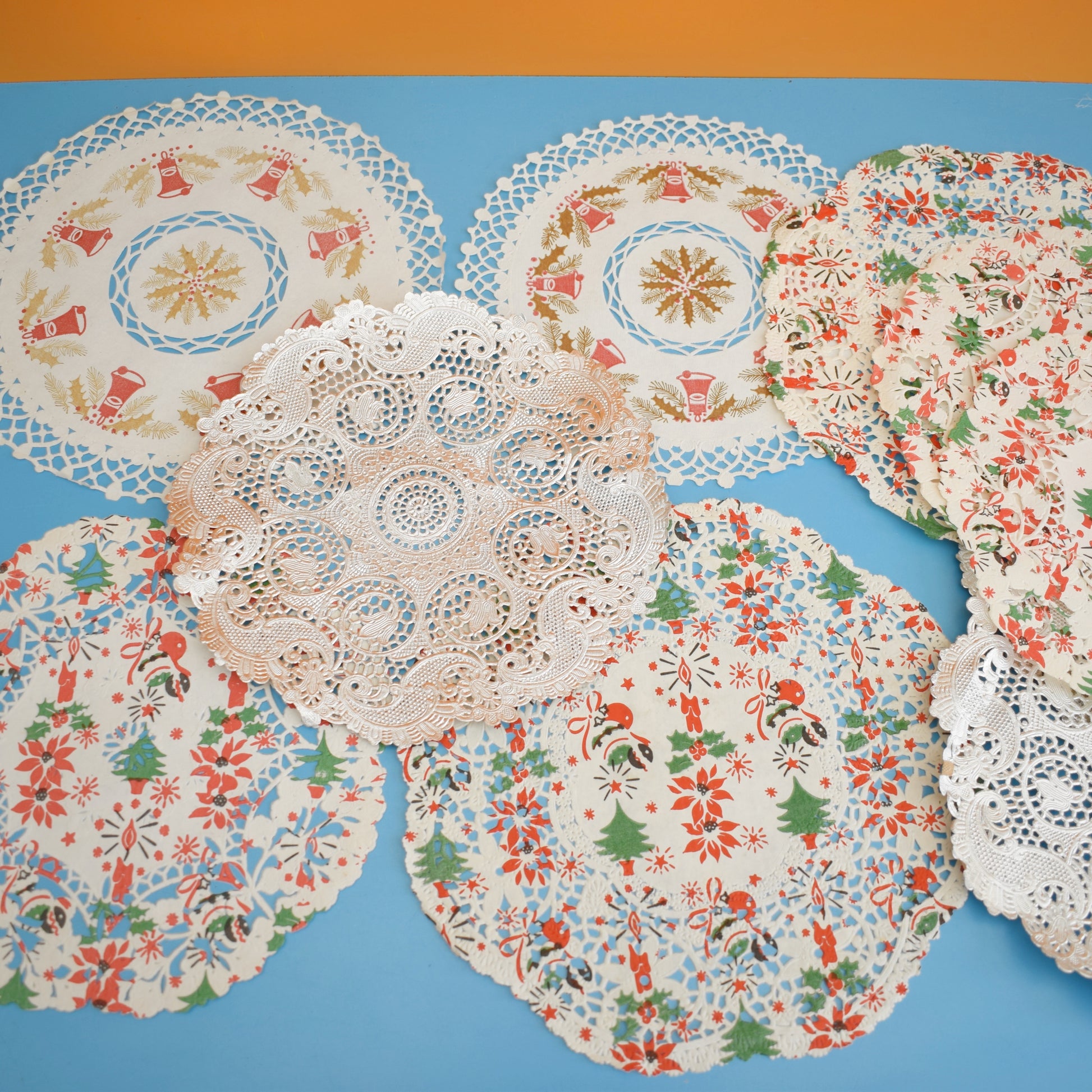 Carefully curated and stored in a homemade folder, this mixed lot includes a range of sizes and patterns—many with festive Christmas motifs—making it especially handy for holiday projects. Use these vintage paper doilies as placemats or cupcake liners, layer them for striking table centerpieces, incorporate them into mixed-media art, or add a nostalgic touch to gift wrapping and party décor.