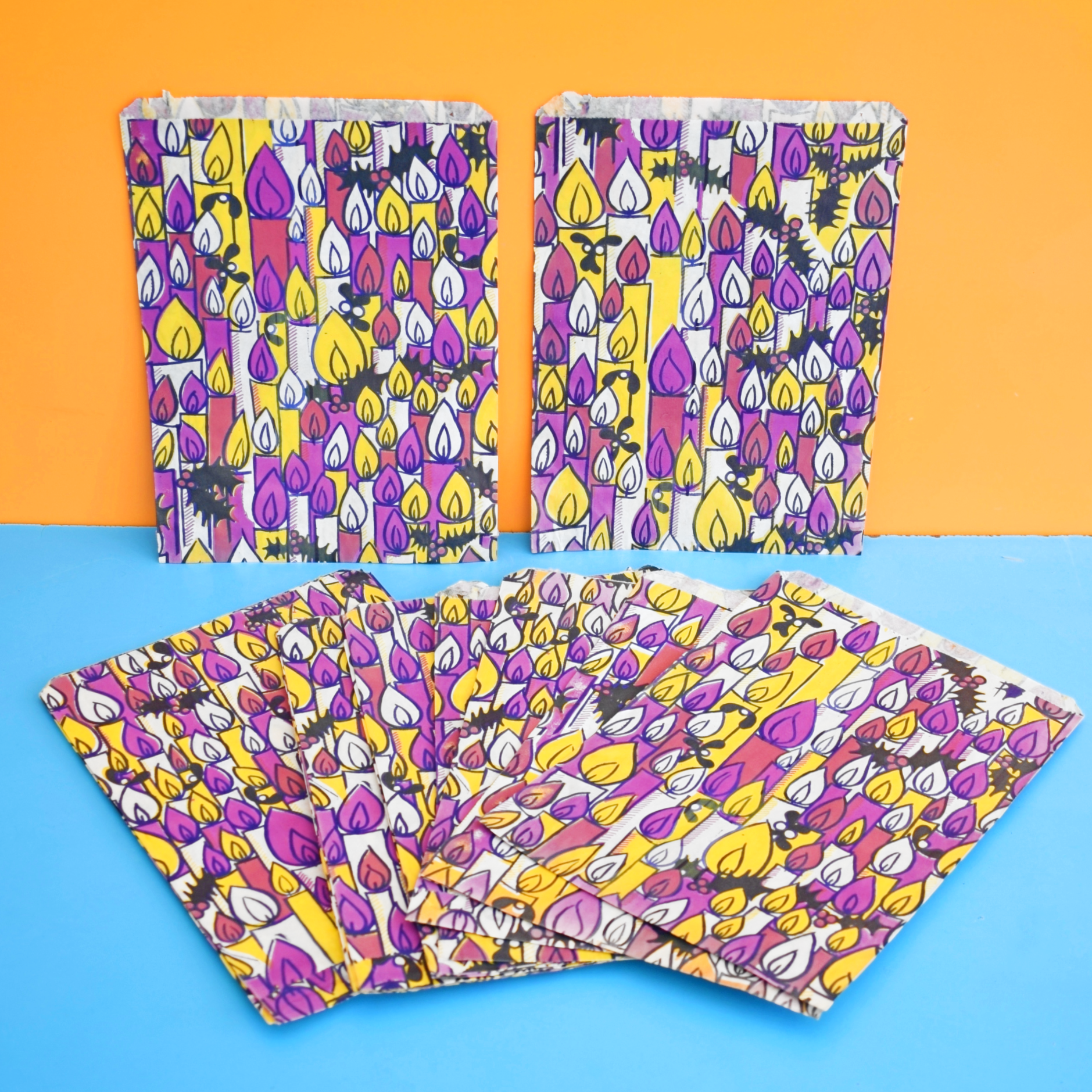 Vintage 1960s Paper Christmas Bags x5 - Purple
