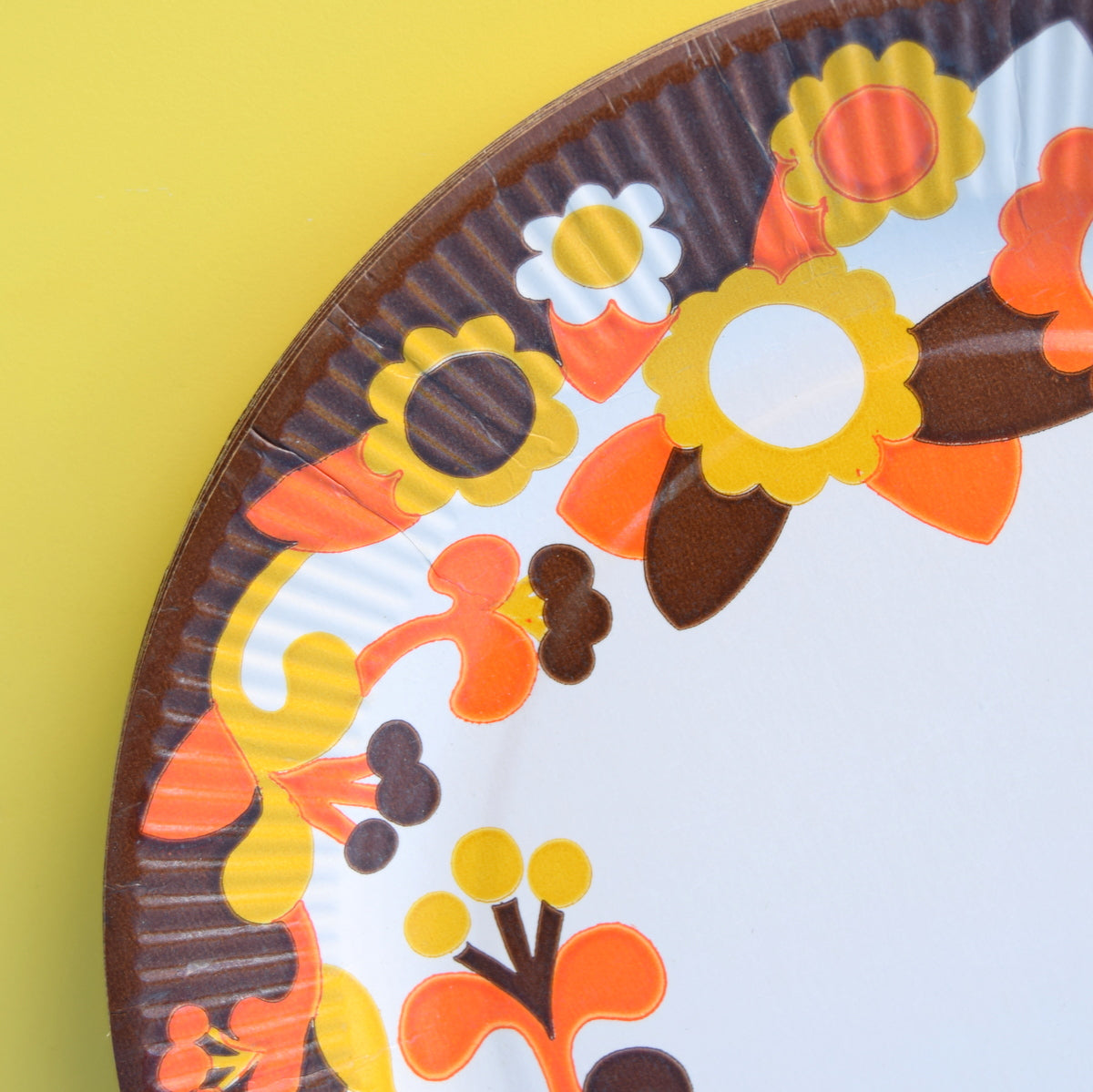 Vintage 1960s Paper Plates - Orange & Brown Flower Power x9