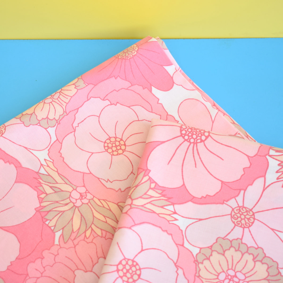 Vintage 1960s Pillow Cases (Pair) - Flower Power Cotton - Pink