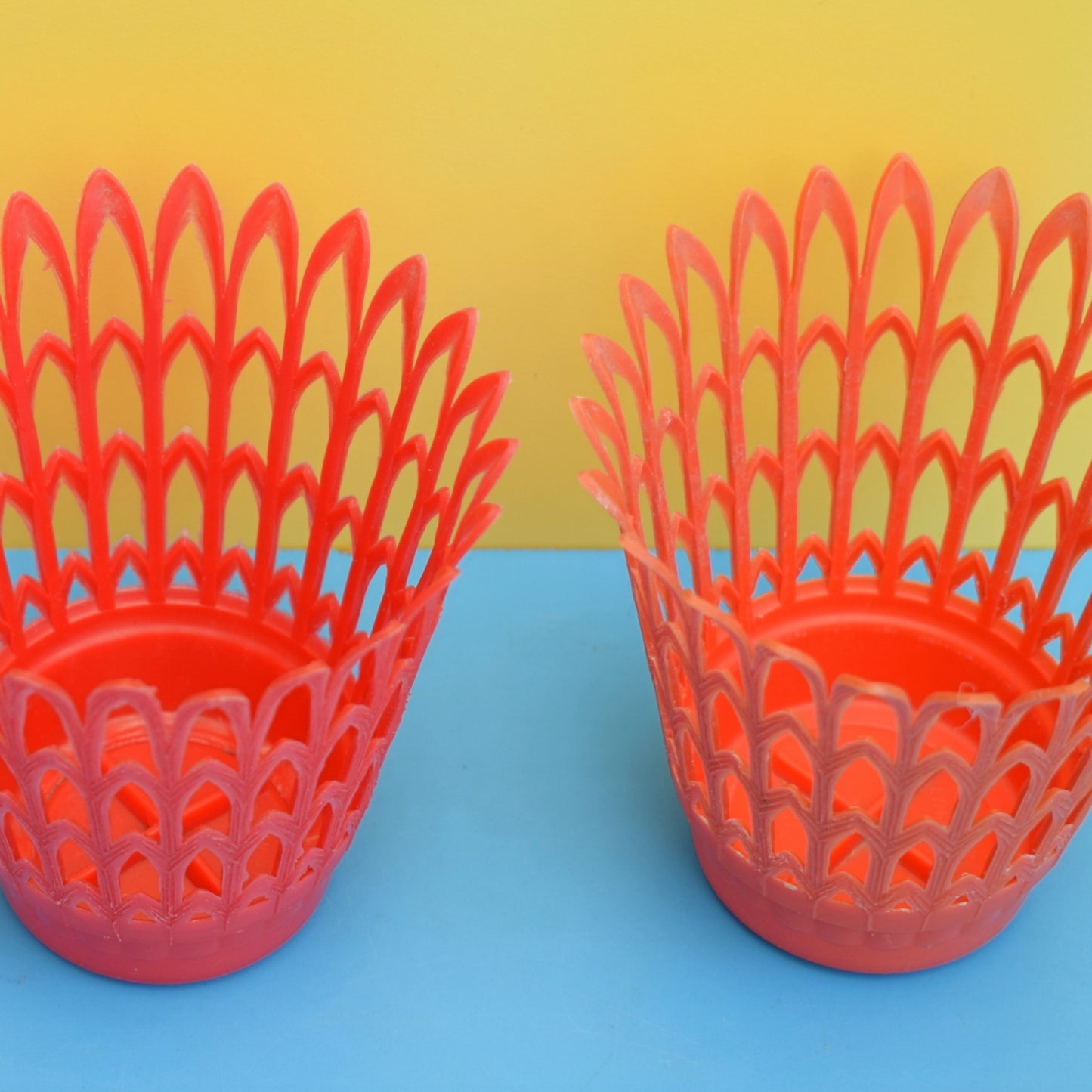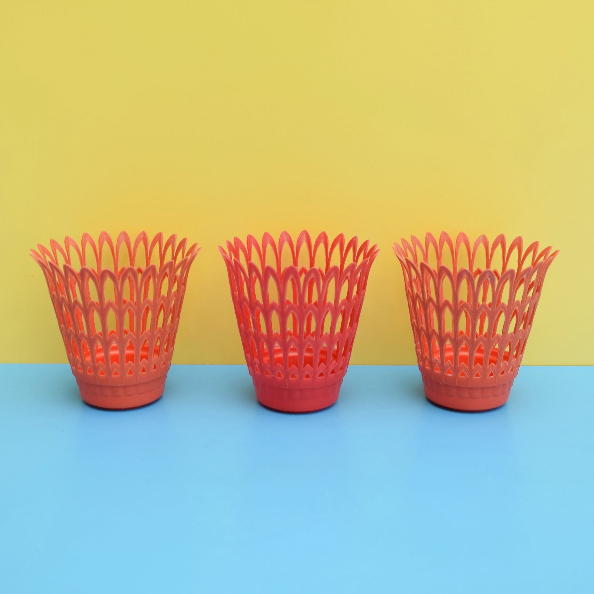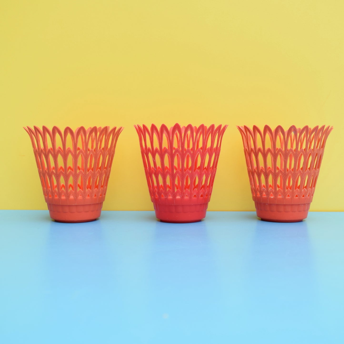 Vintage 1960s Plastic Cactus Plant Pots - Red & Orange