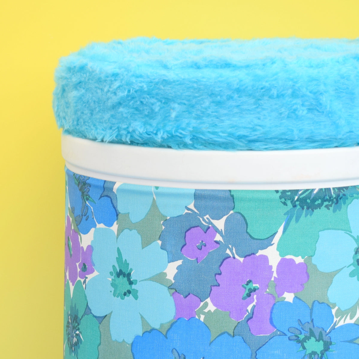 Vintage 1960s Plastic Laundry Bin - Flower Power - Blue, Purple & Green