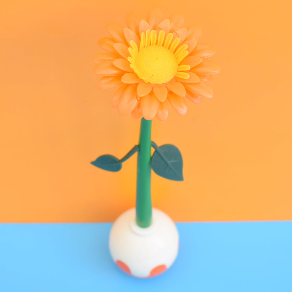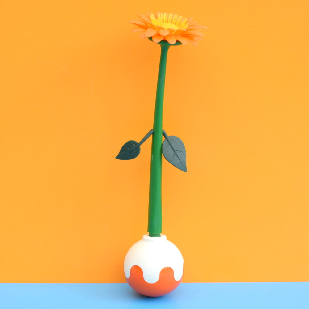 Vintage 1960s Plastic Pen Holder - Orange / White