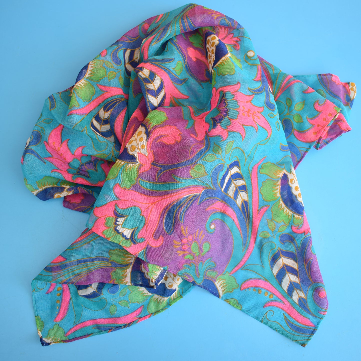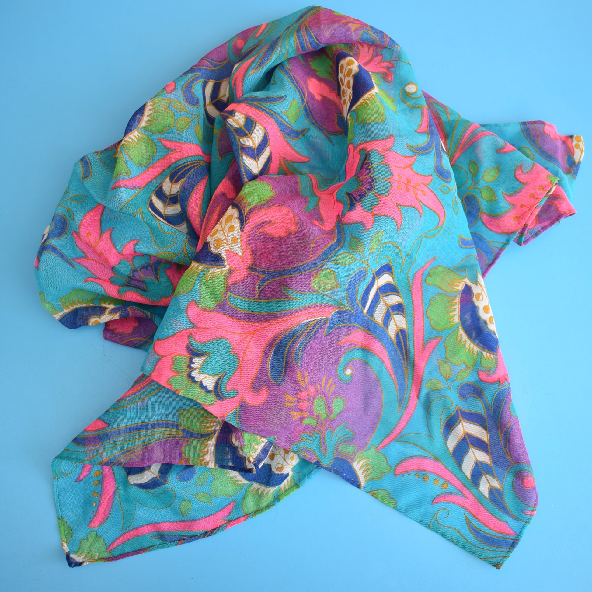 Vintage 1960s Psychedelic Scarf - Pink & Turq