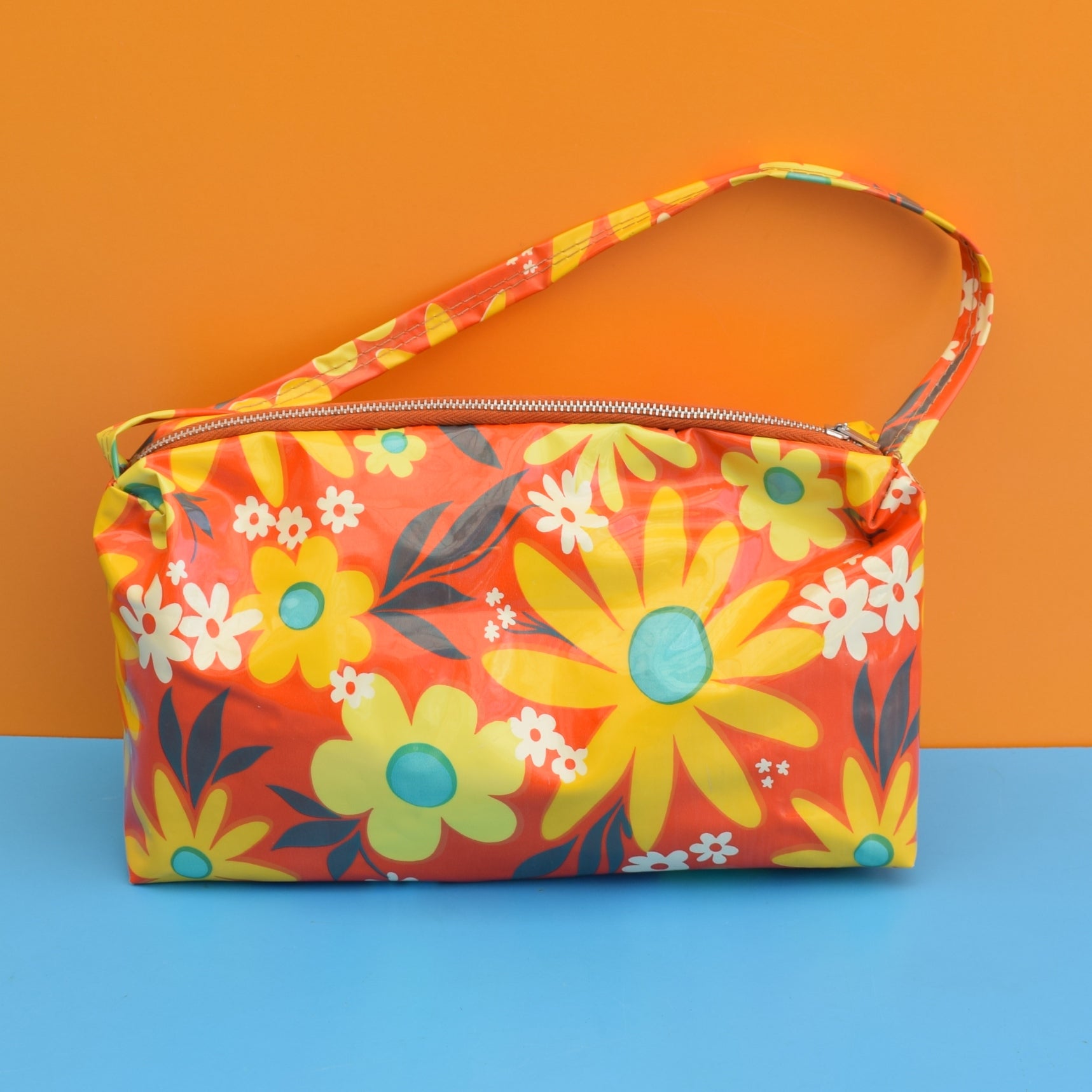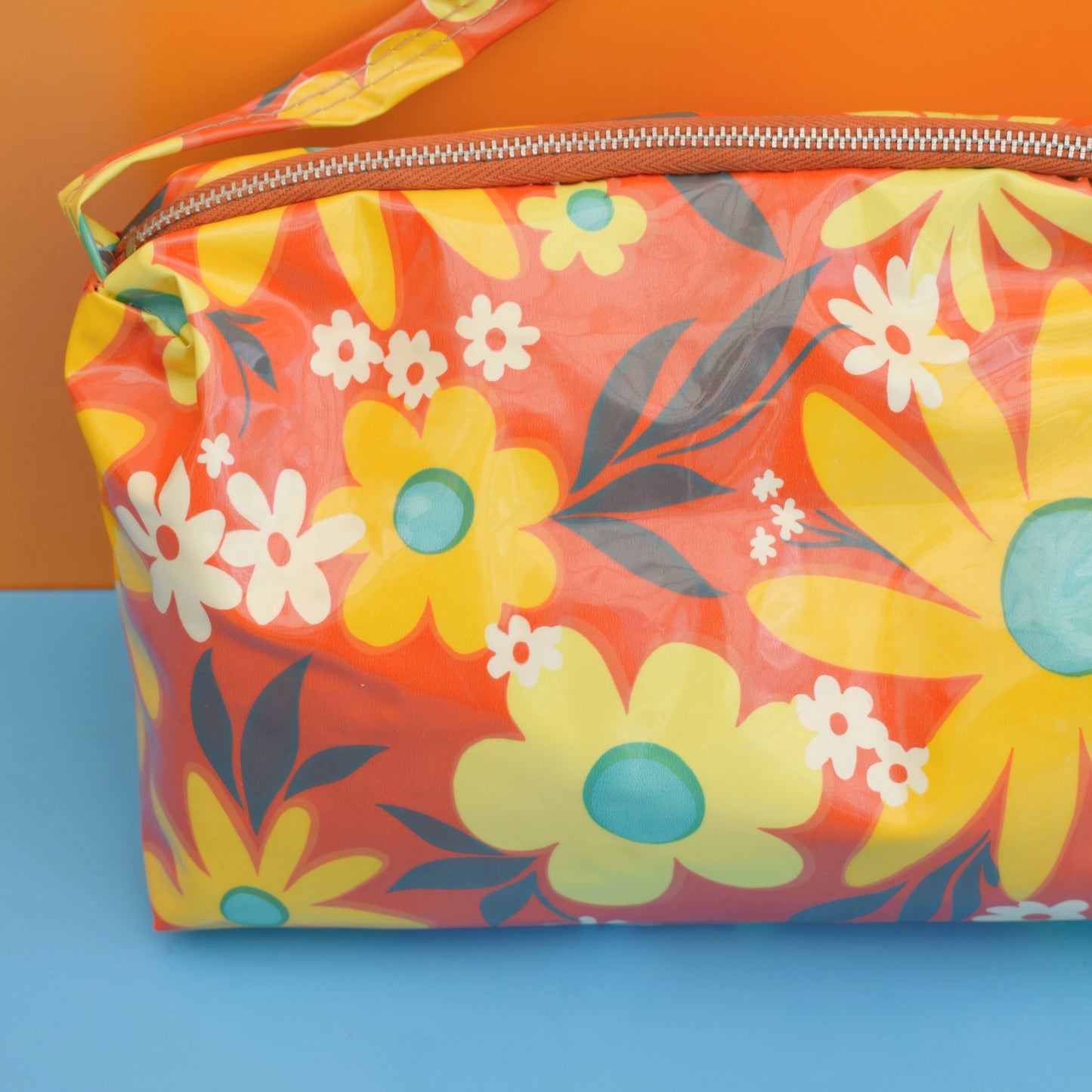 Vintage 1960s PVC Wash Bag / Handbag - Orange Flower Power