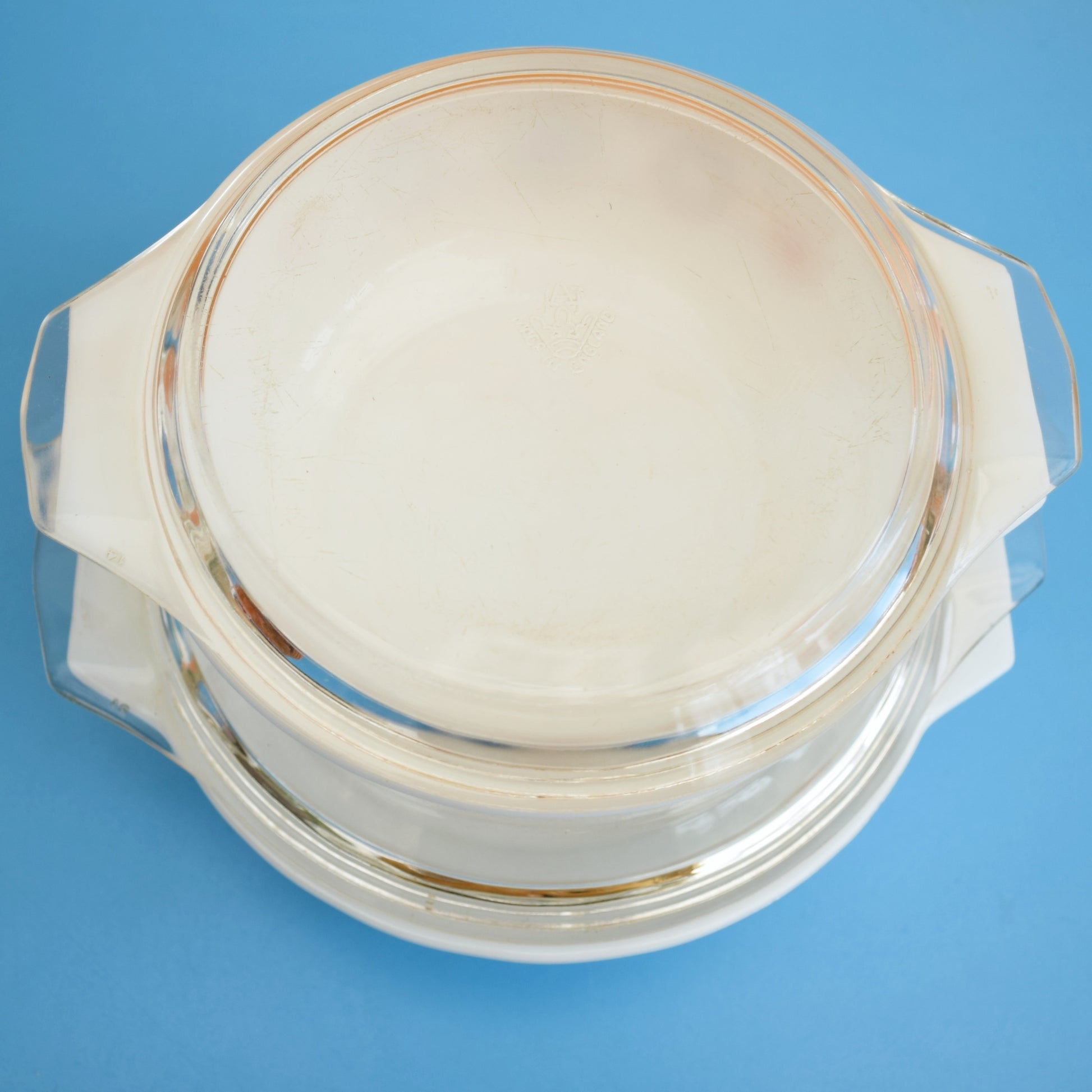 Larger measures 8cm high (inc lid) x 24cm in diameter (inc handles of lid) the smaller measures 6.5cm high x 20cm in diameter (inc lid)
