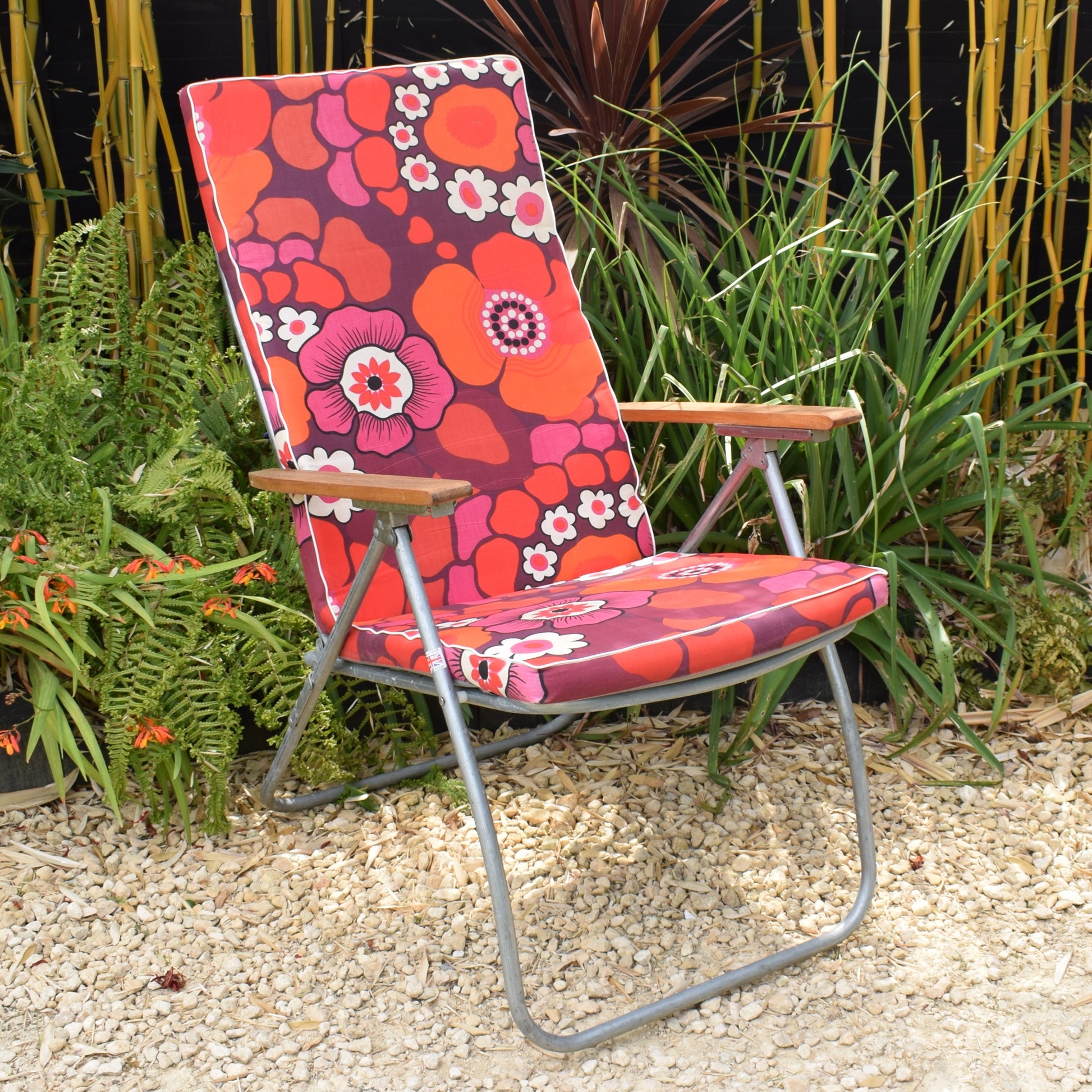 Vintage 1960s Reclining Garden Chair - Pink/Red