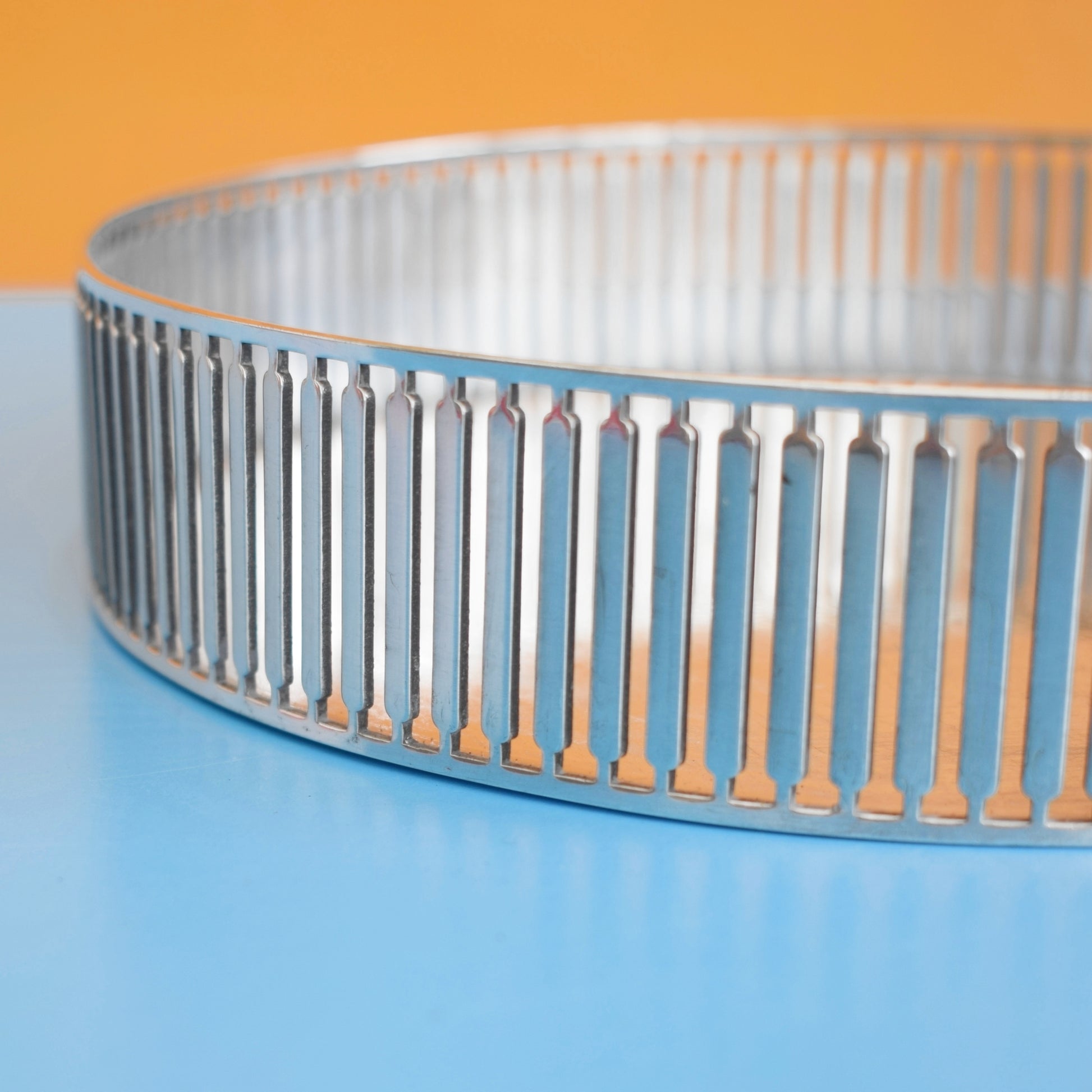 Vintage 1960s Round Metal Pierced Tray - Silver Plate - Lovely Display