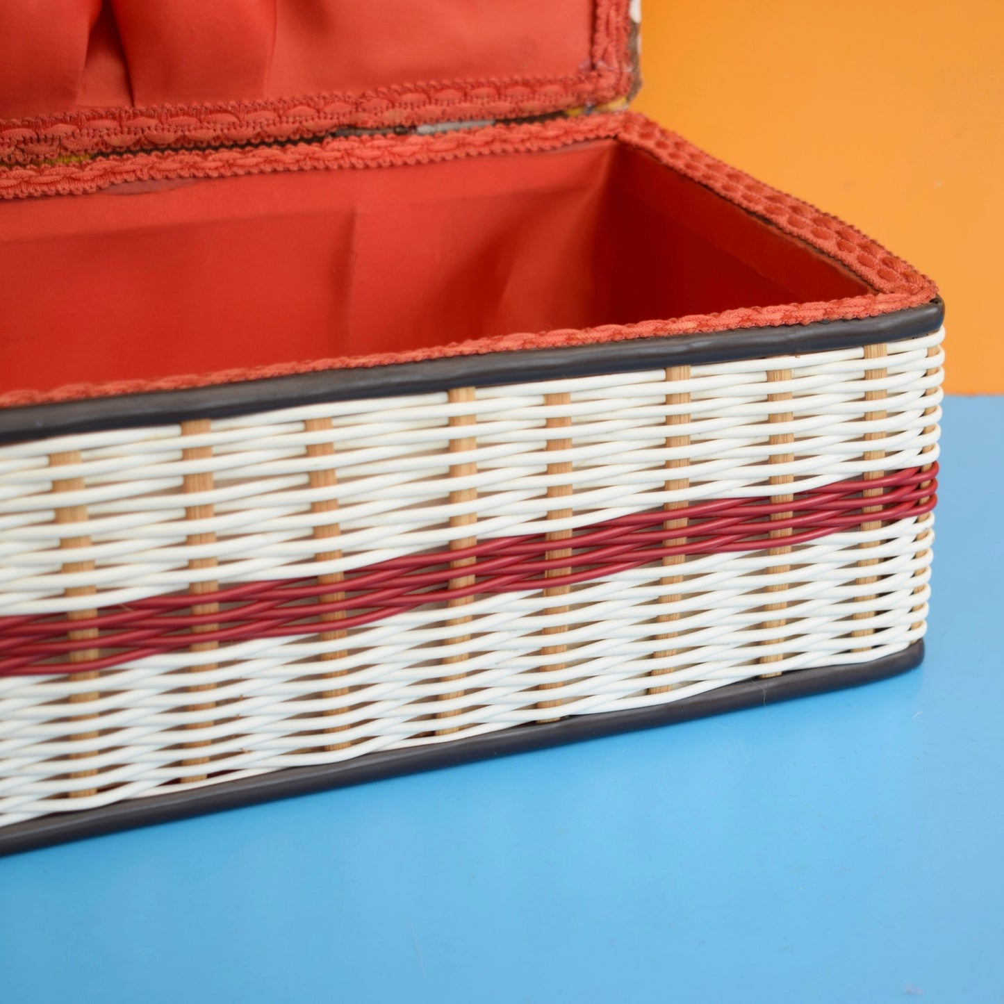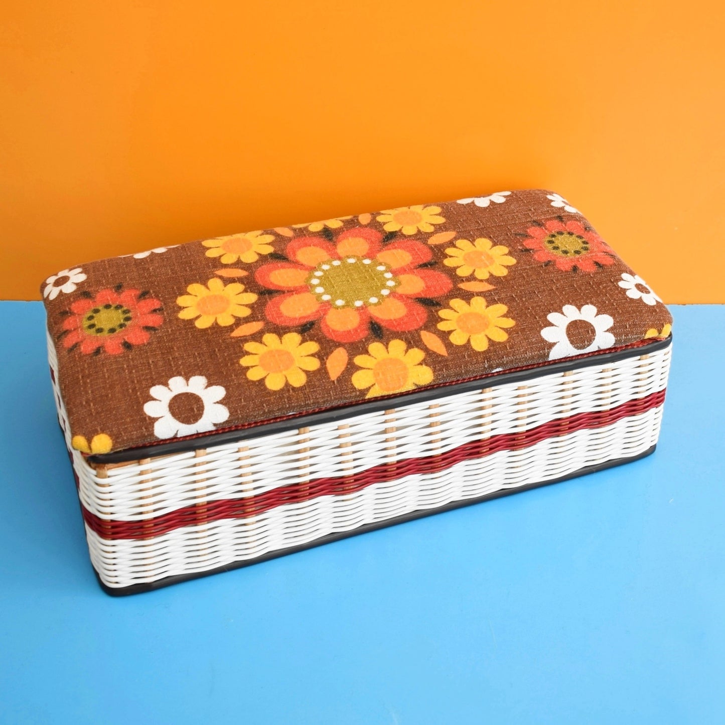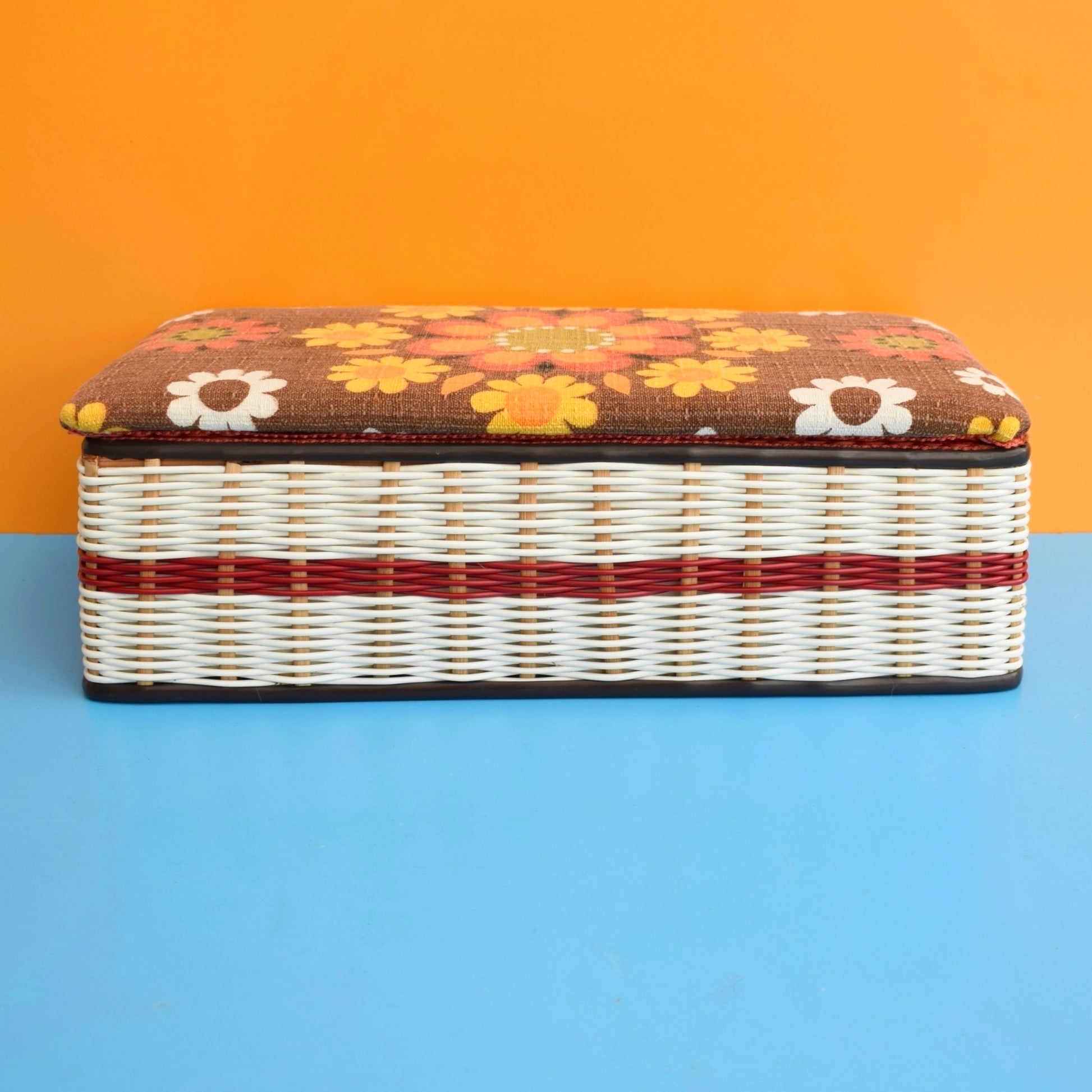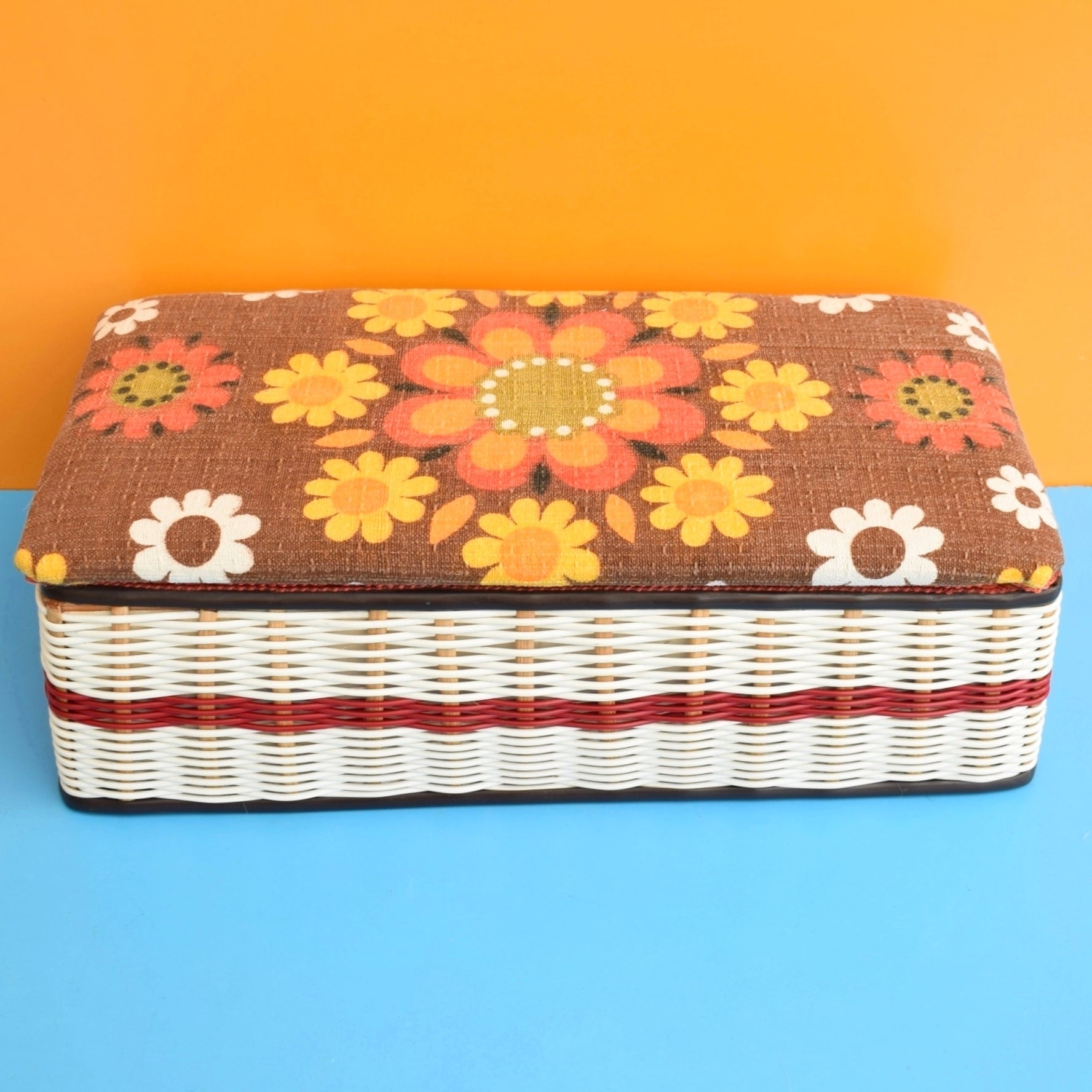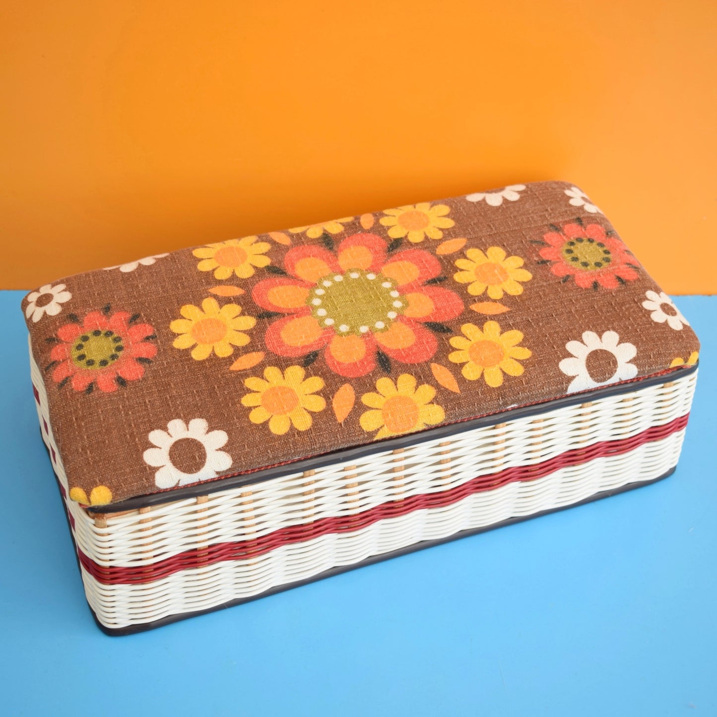 Vintage 1960s Sewing / Hobby Box - Flower Power - Brown & Orange