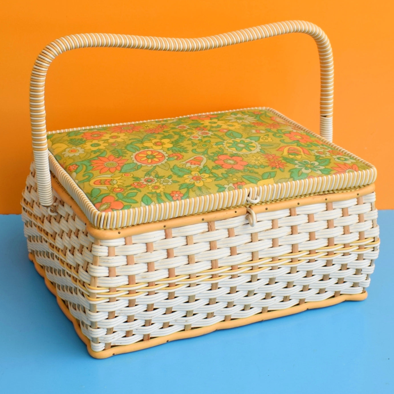 Vintage 1960s Sewing / Hobby Box - Flower Power - Green & Orange