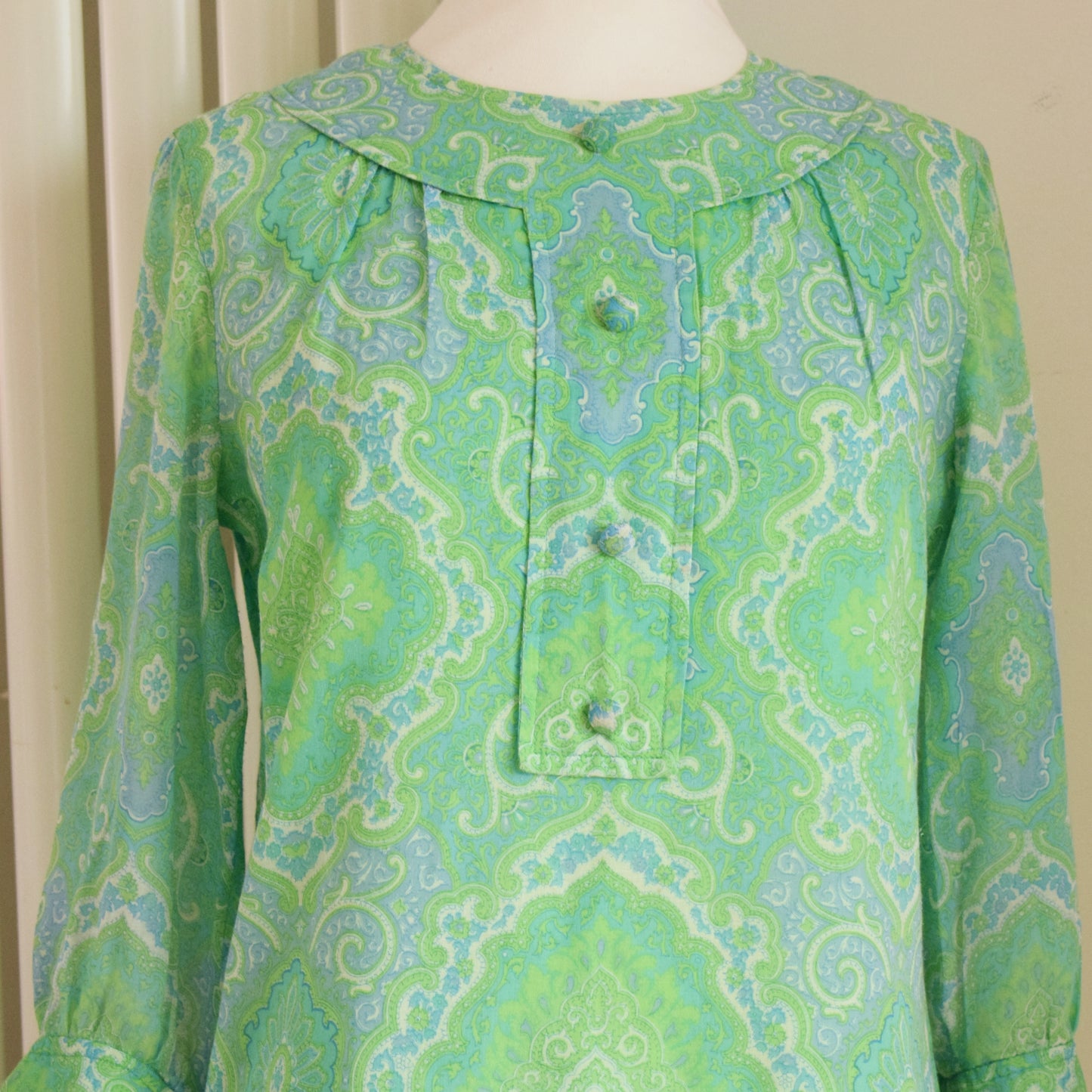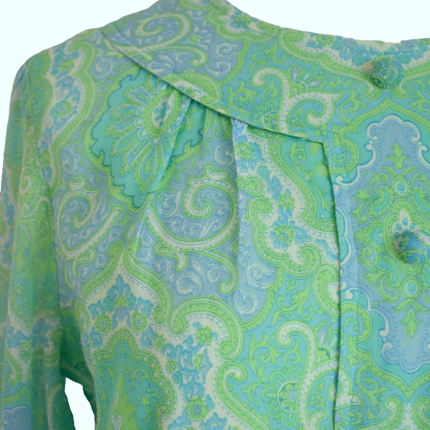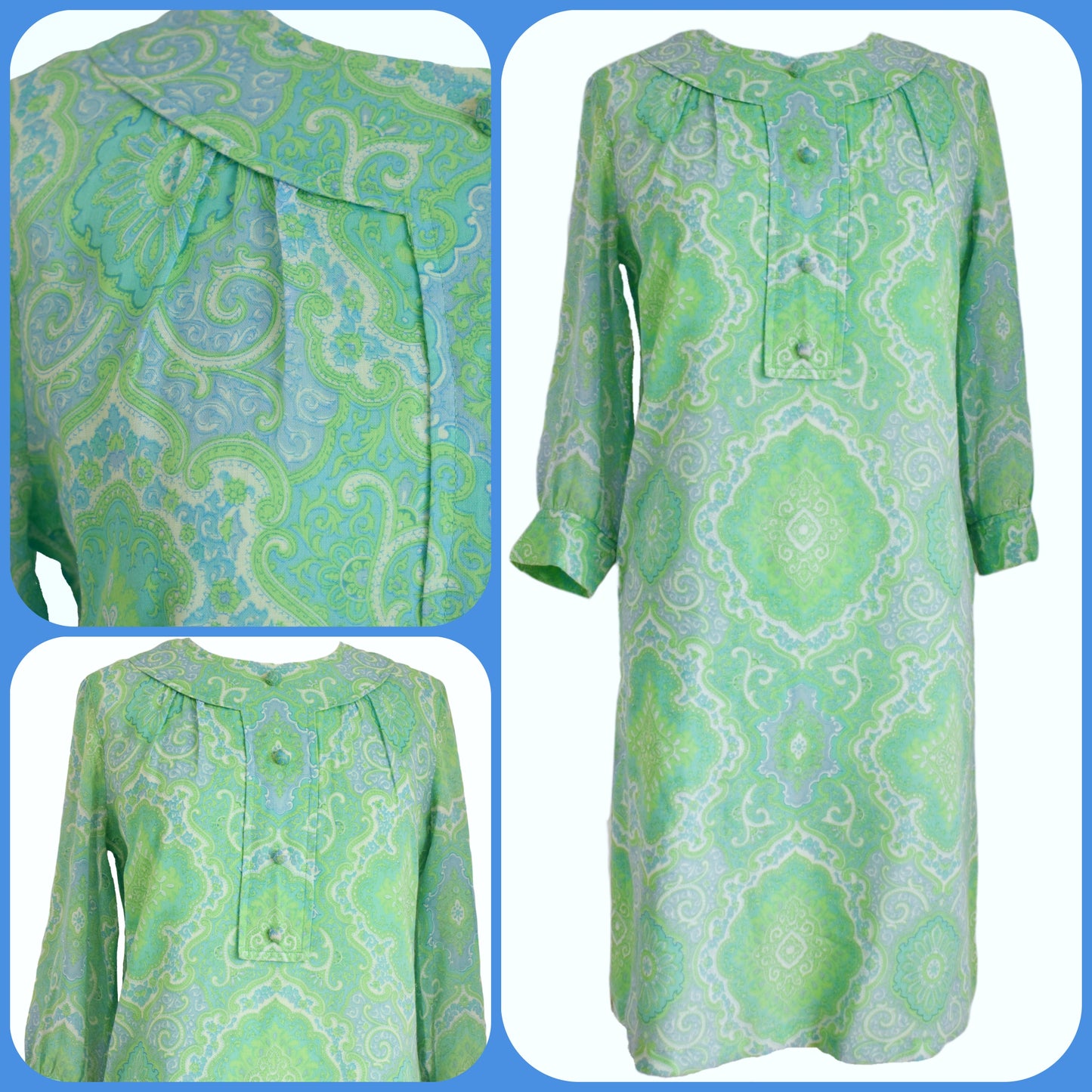 Vintage 1960s Shift Dress - Paisley Green Size 12/14