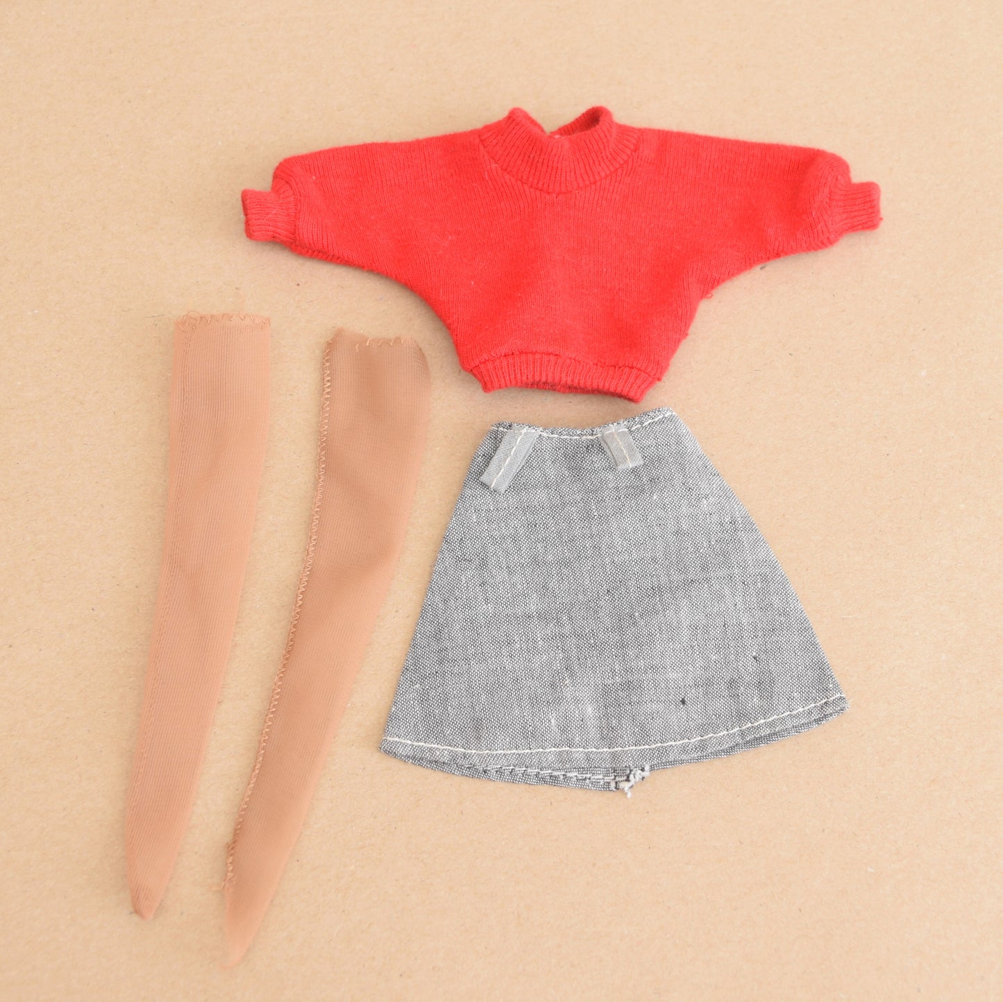 'Casual' Red slouch jumper, grey skirt and stockings (one stocking needs sewing at the seam on the foot)