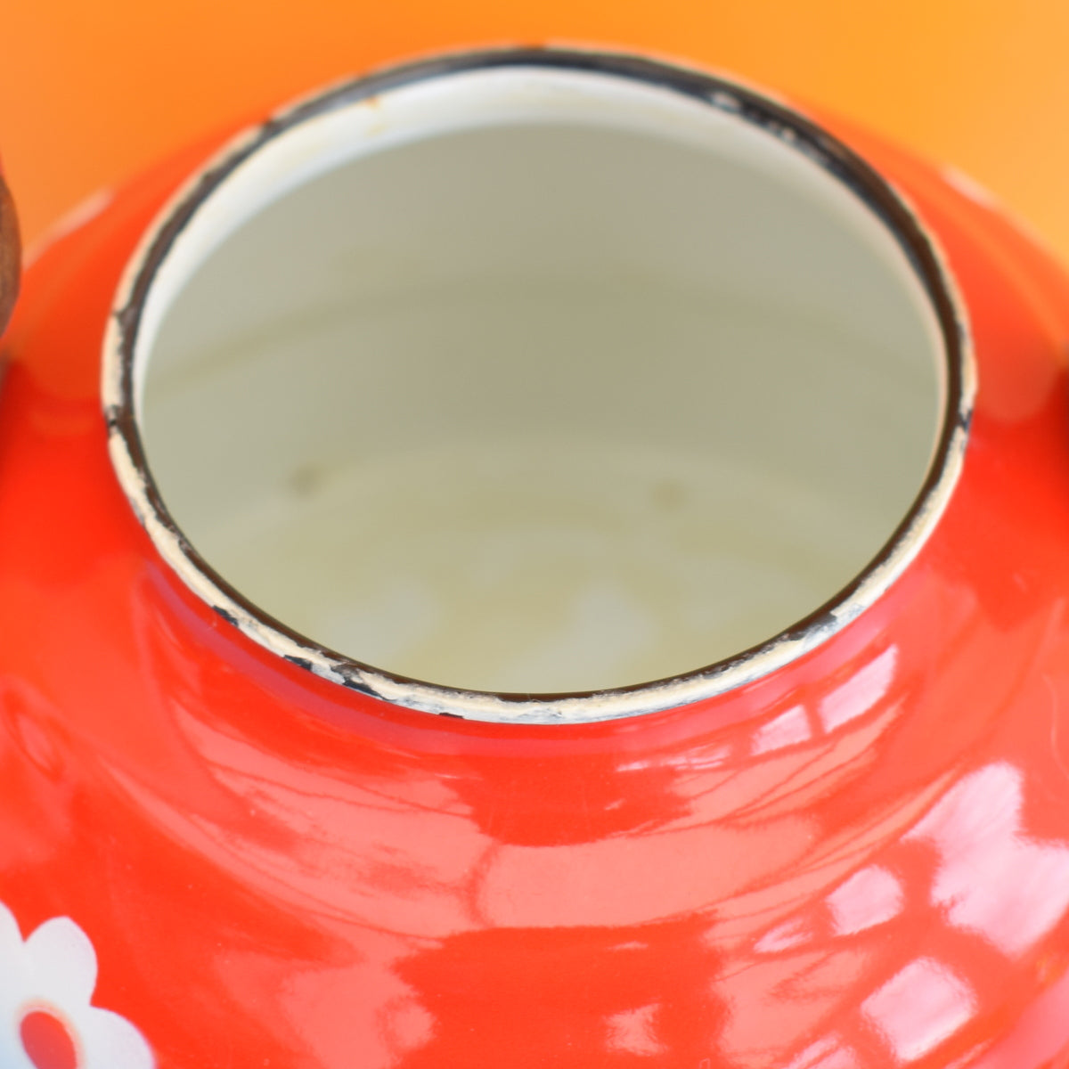 Vintage 1960s Small Enamel Tea Pot / Kettle - Red Flower Power