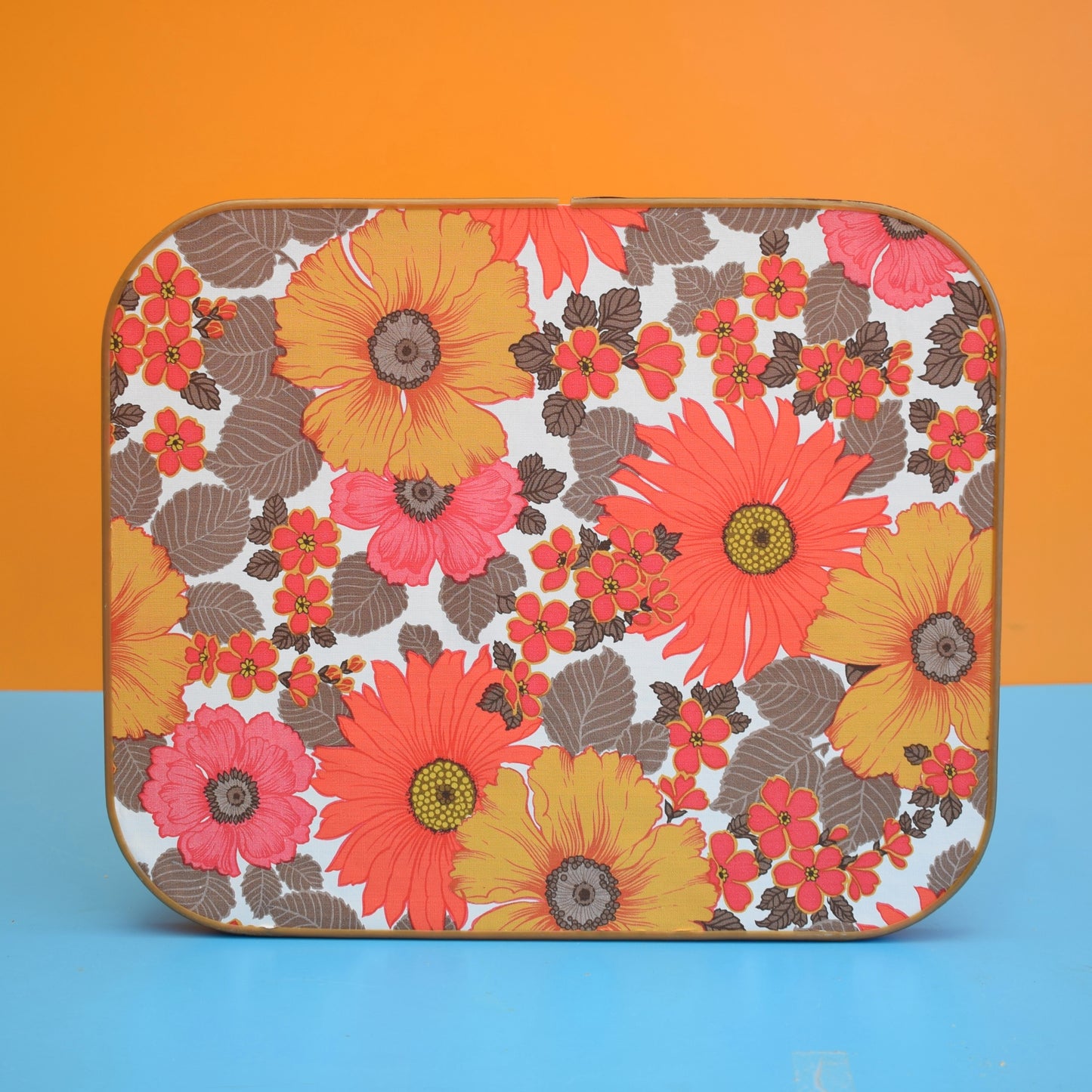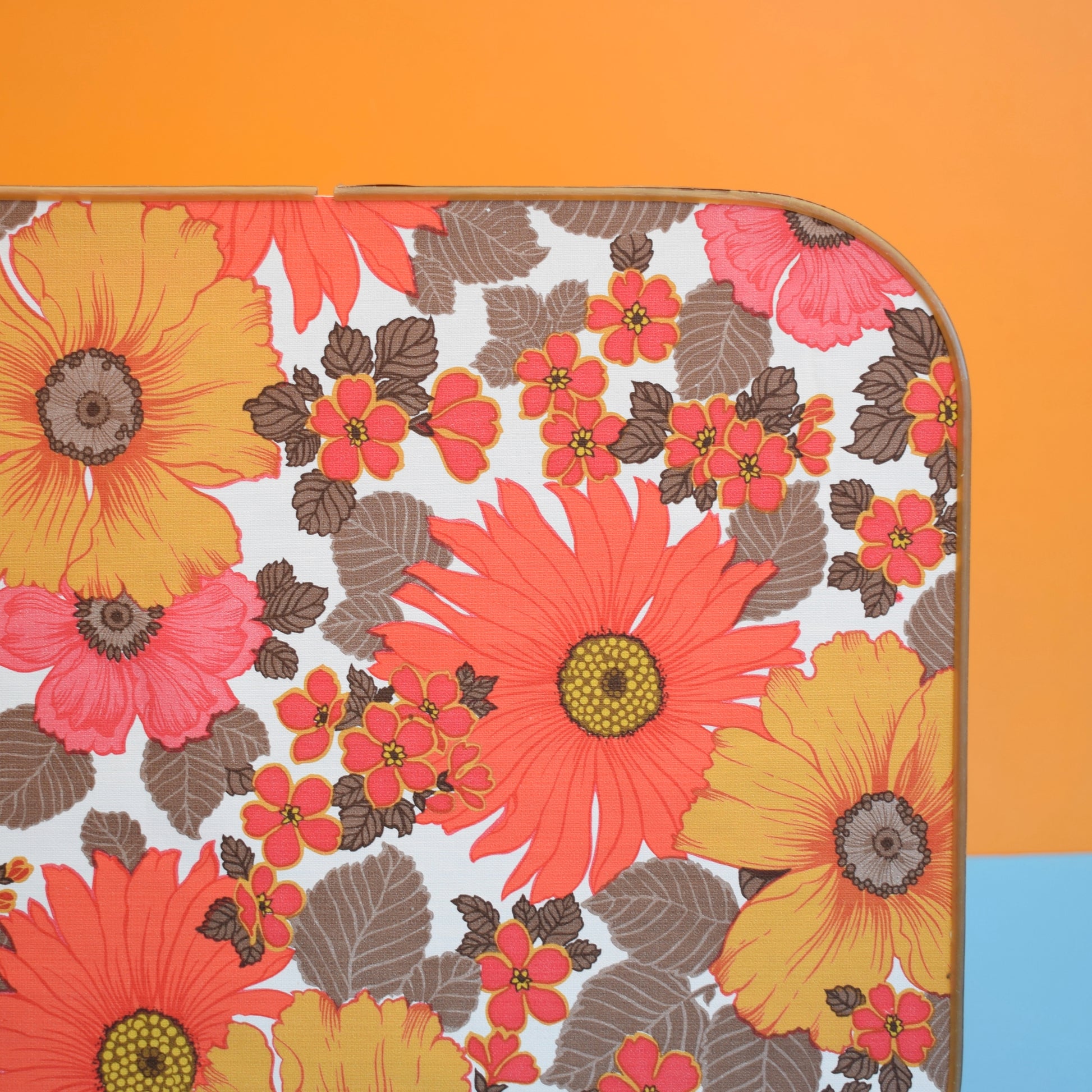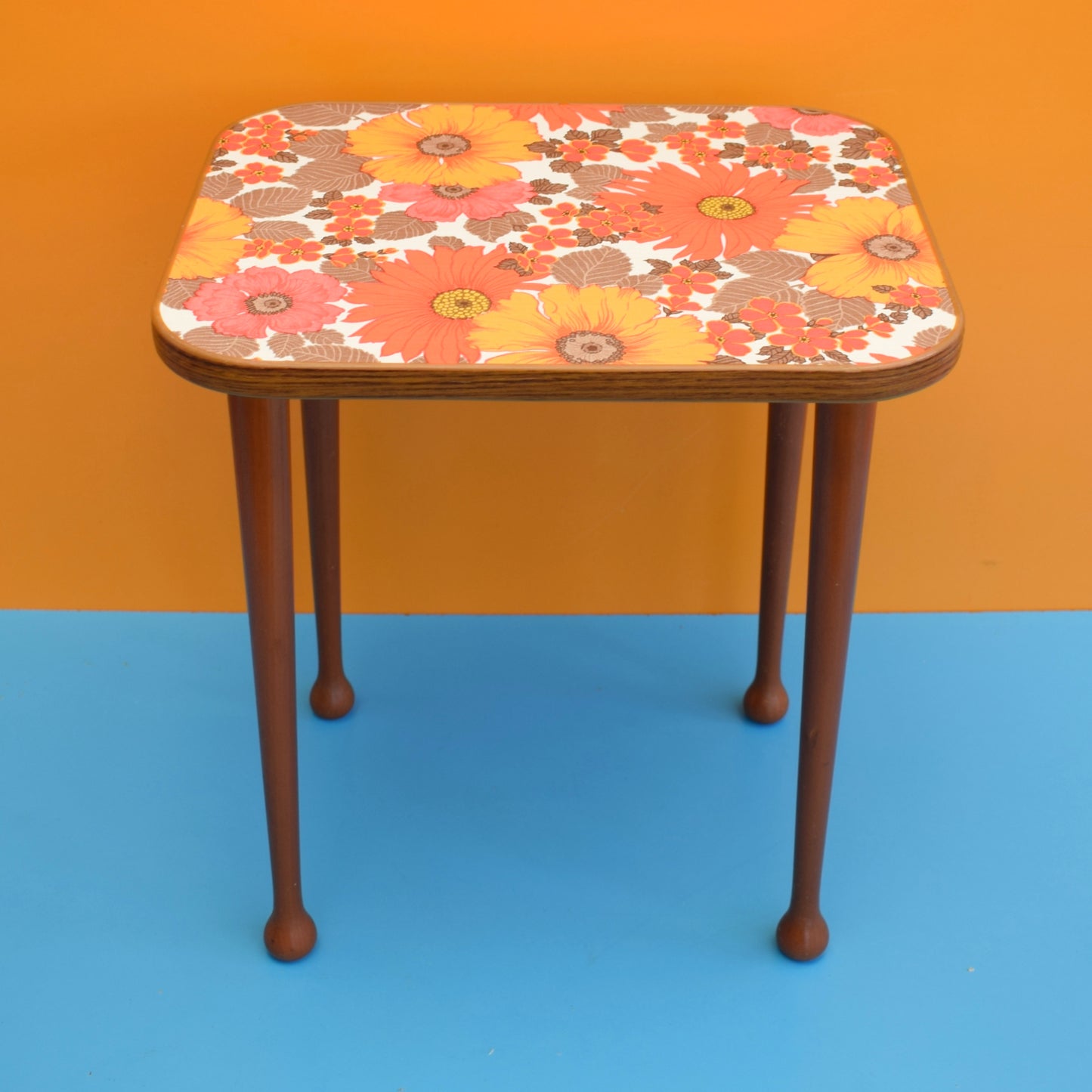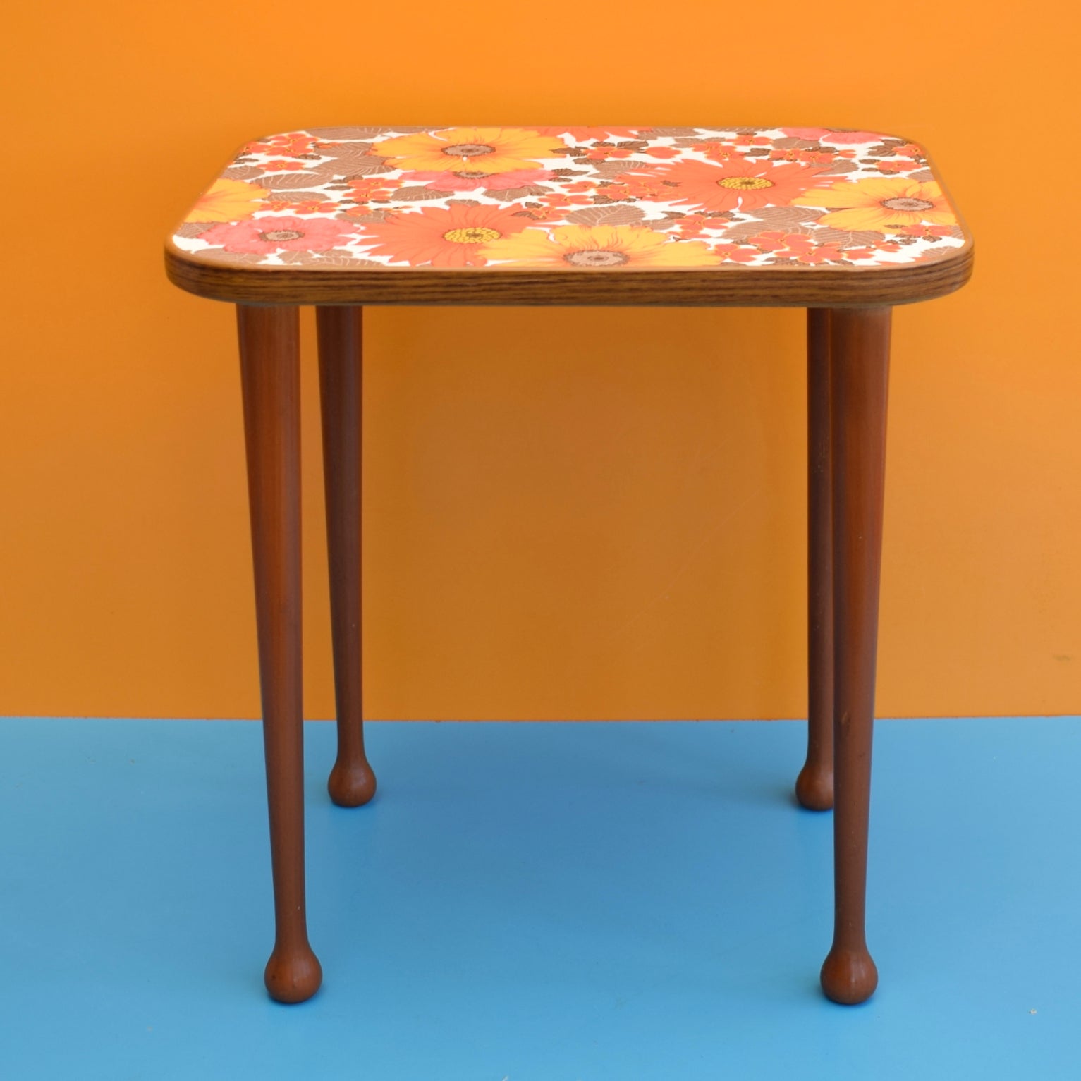Vintage 1960s Small Table - Flower Power - Red & Brown