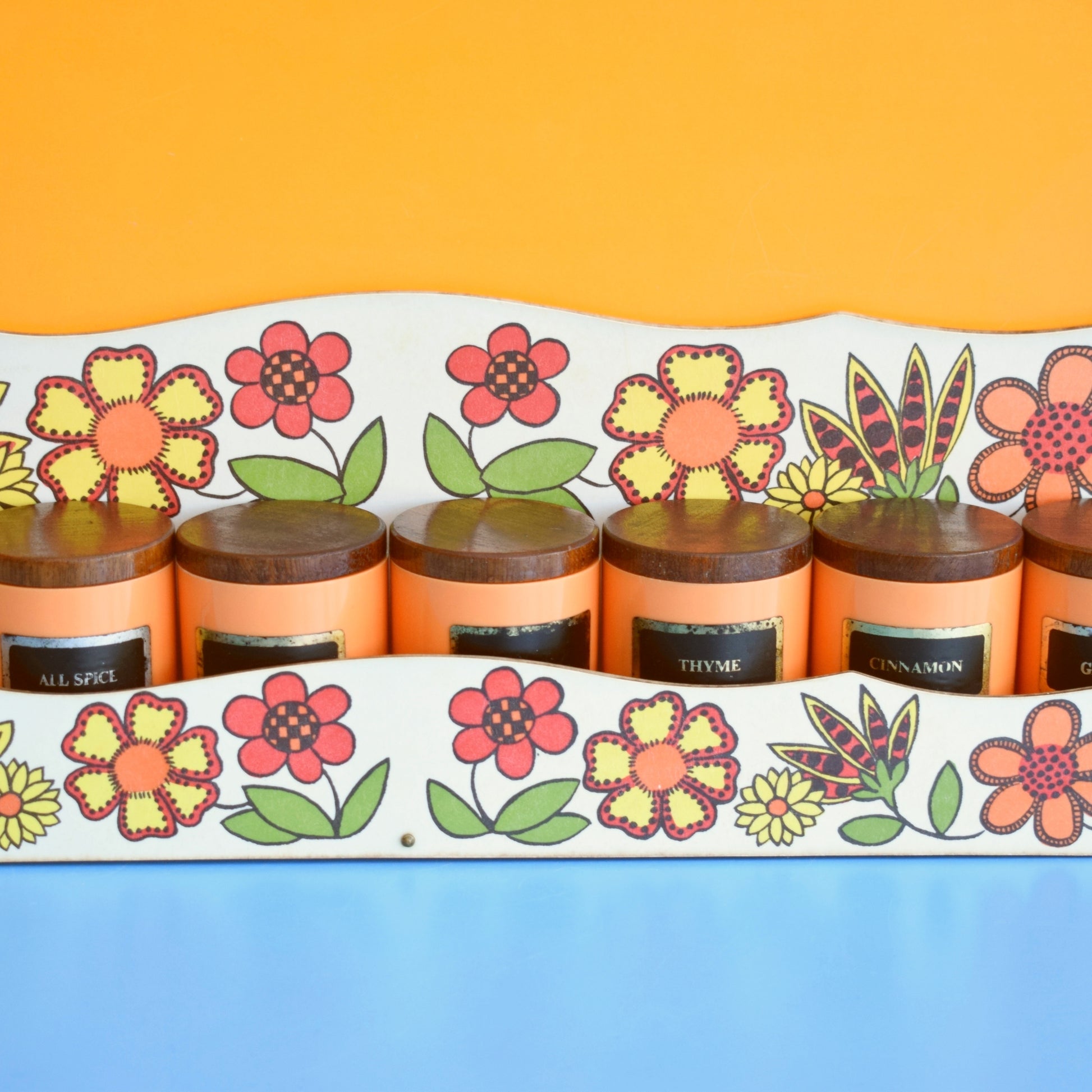 Vintage 1960s Taunton Vale Spice Jar Set - Flower Design - Orange, Red & Yellow