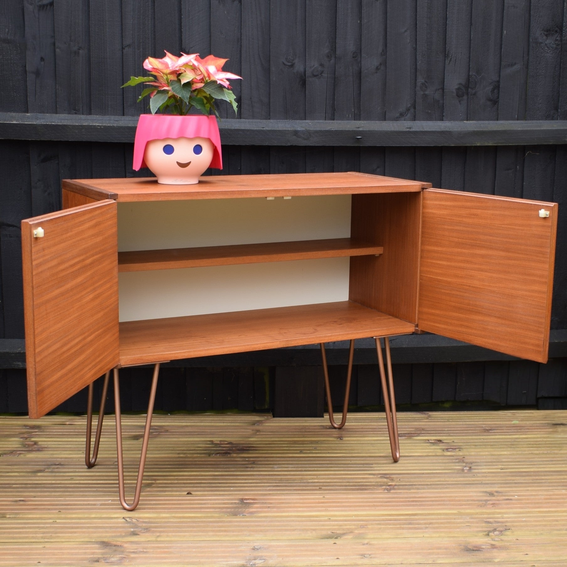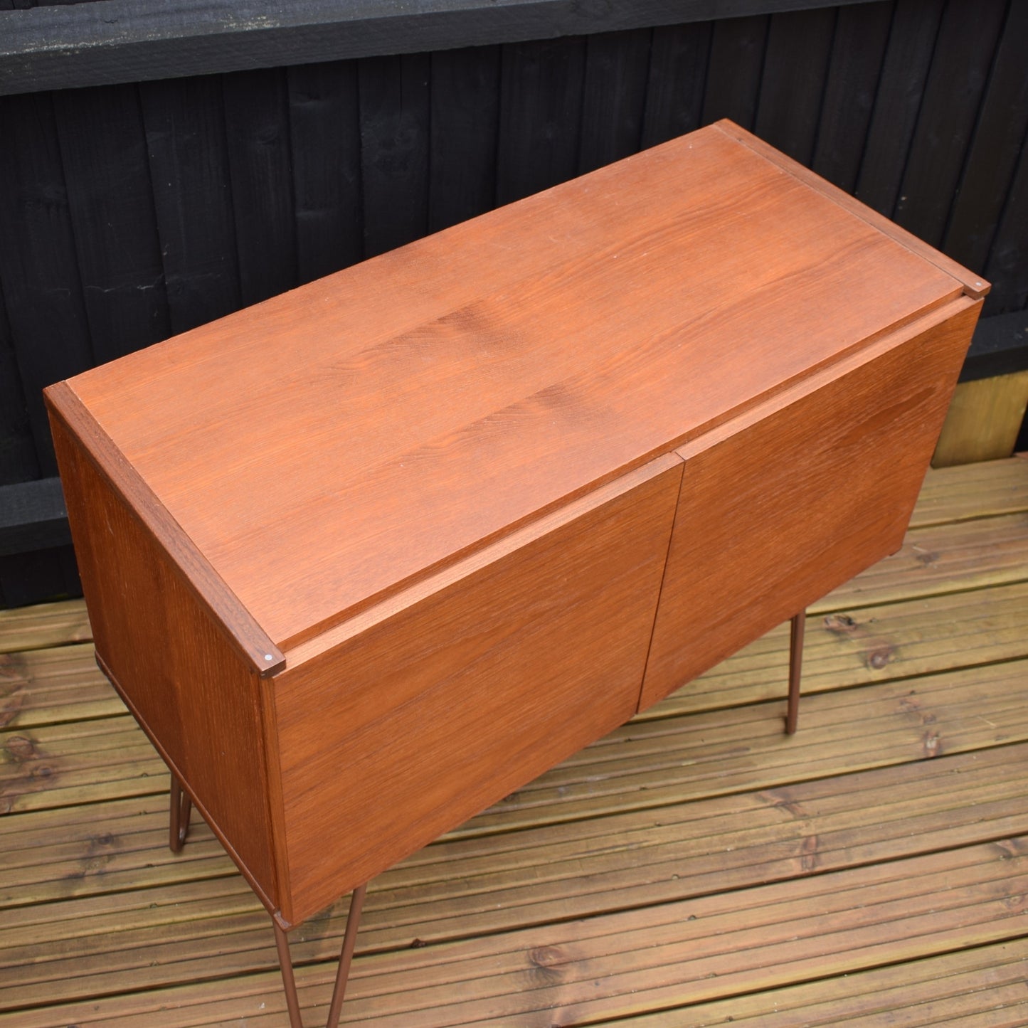 Vintage 1960s Teak Drinks/ Storage Cabinet - Hairpin Legs