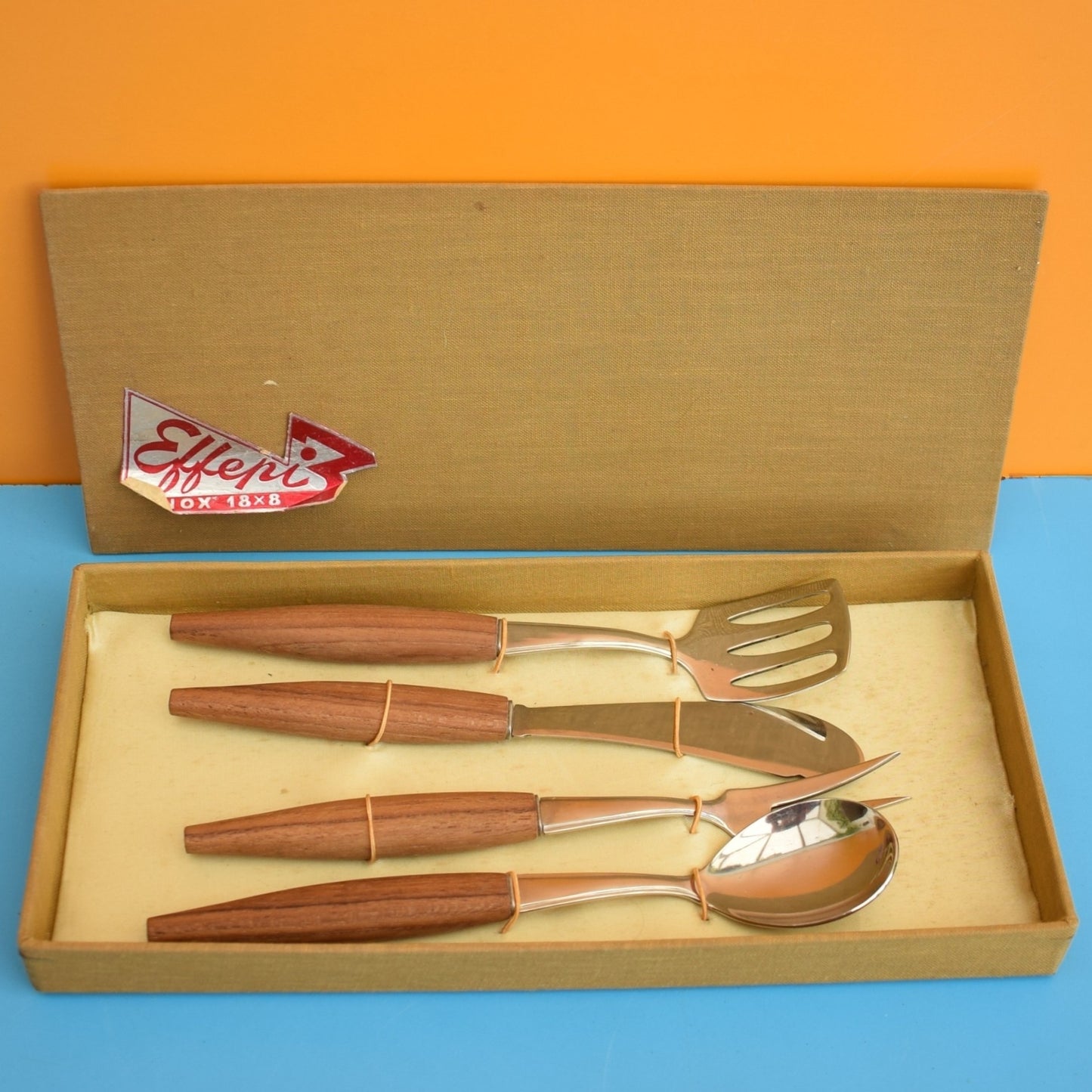 Vintage 1960s Teak / Steel Cutlery - Boxed - Italian - Effepi
