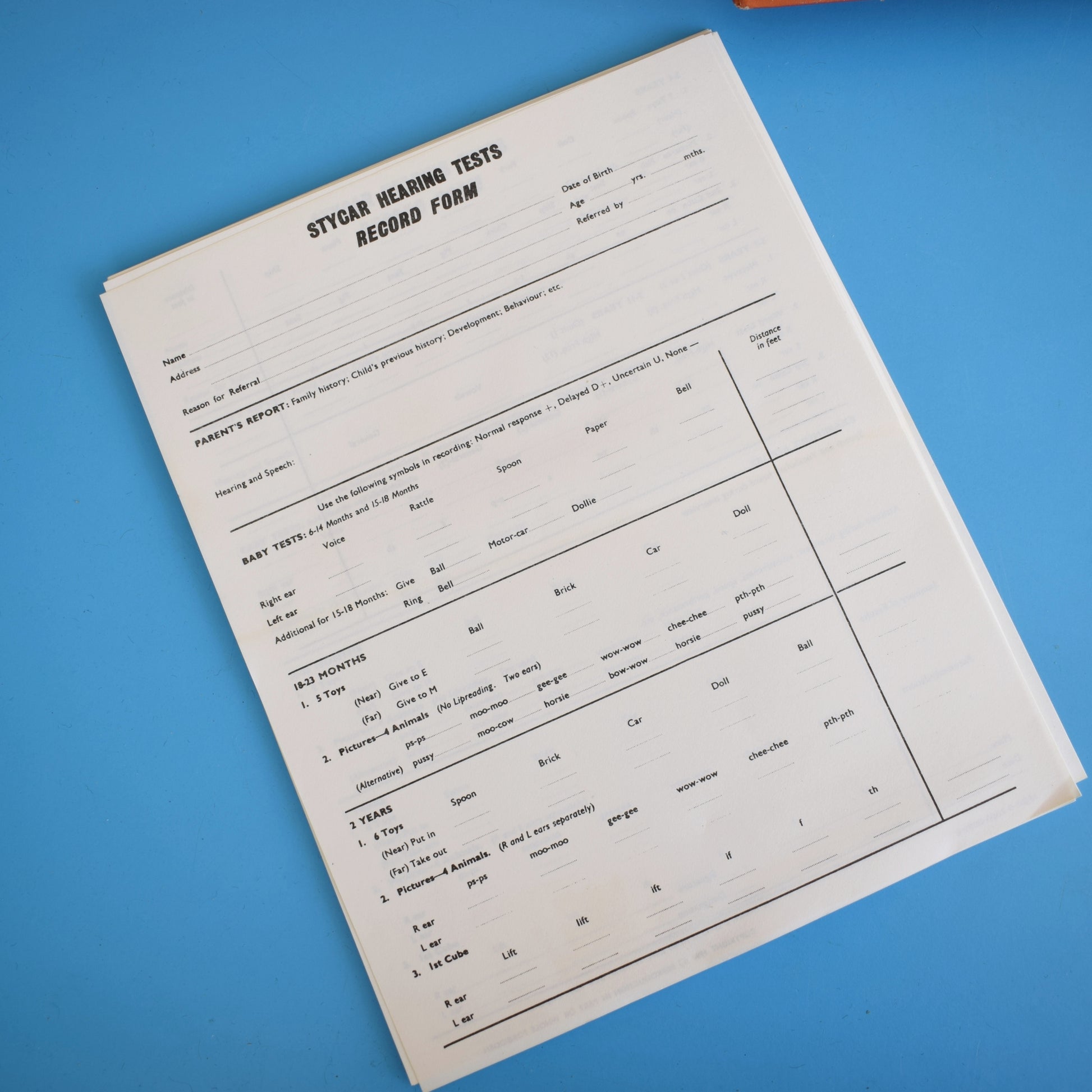 Original 1960s Stycar Hearing & Vision Test Kit — a compact, collectible medical diagnostics set for collectors, educators, and mid-century enthusiasts. Complete with original paperwork and extras, it captures authentic 1960s healthcare design and typography.