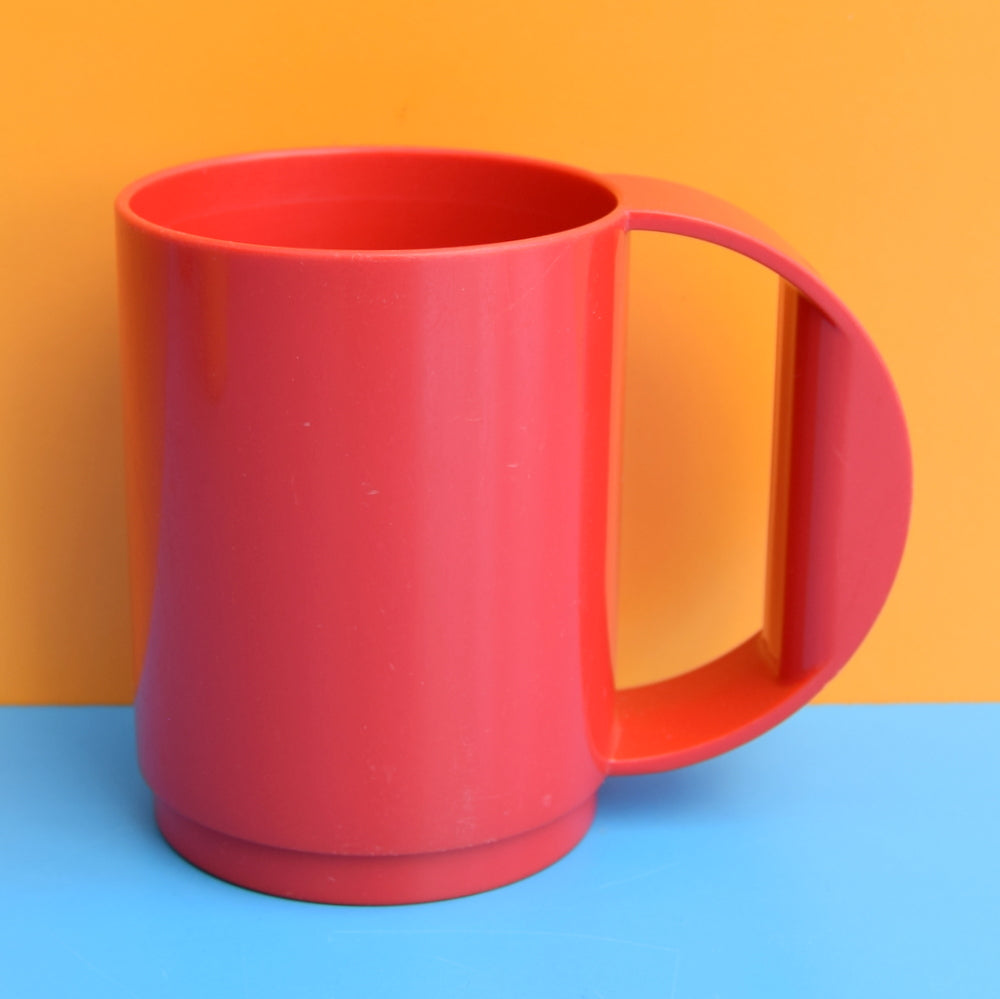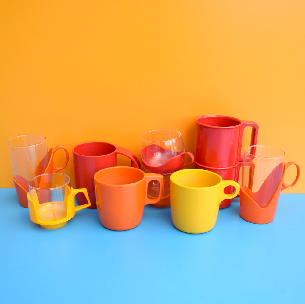This is a selection of fantastic vintage mugs in bright red, orange or yellow